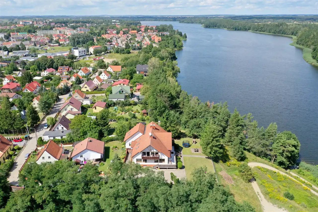 Malowniczo położony, piękny dom o powierzchni użytkowej 633 m2, zlokalizowany w Olecku, nad Jeziorem Olecko Wielkie. Nieruchomość znajduje się w odległości 60 m od Jeziora Olecko Wielkie, bezpośrednio nad plażą.