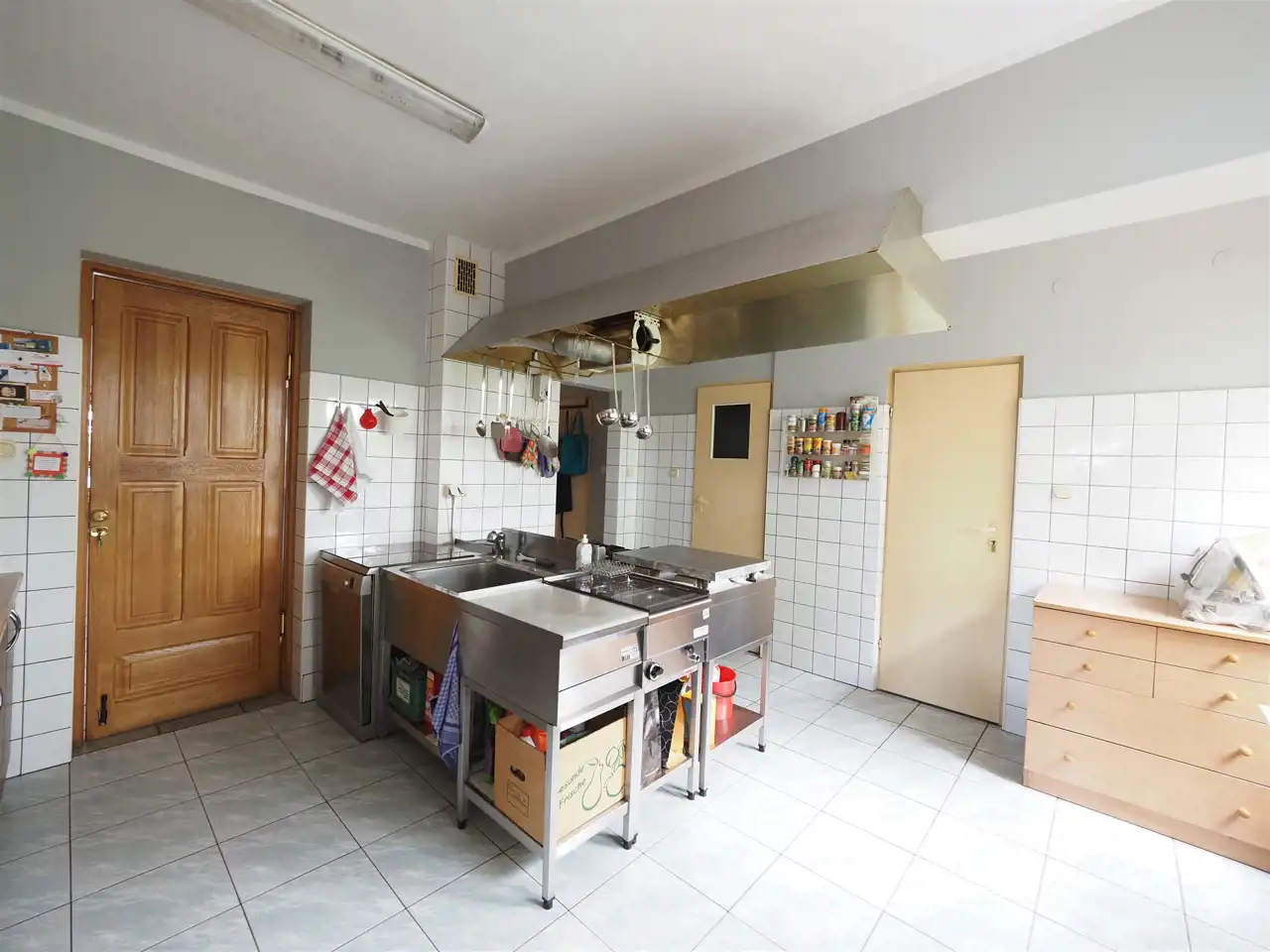 Piwnica użytkowa (223 m2 ) w której skład wchodzą: garaż (18 m2), warsztat (16 m2), pięć pomieszczeń gospodarczych (3,3 m2, 3,4 m2, 3,9 m2, 5,9 m2, 7 m2), kotłownia (9 m2), dwa WC (2,2 m2, 2,2 m2), magazyn (10,5 m2), hol (30 m2), dwa korytarze (20 m2, 13 m2), dwie łazienki (5,6 m2, 8 m2), trzy pokoje (22 m2, 18 m2, 10 m2) oraz pralnia wyposażona w solarium (15 m2).