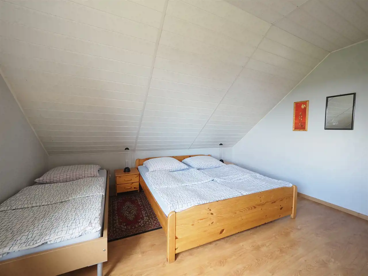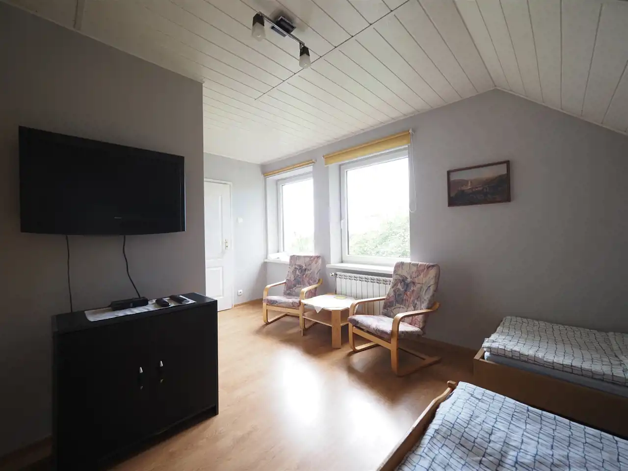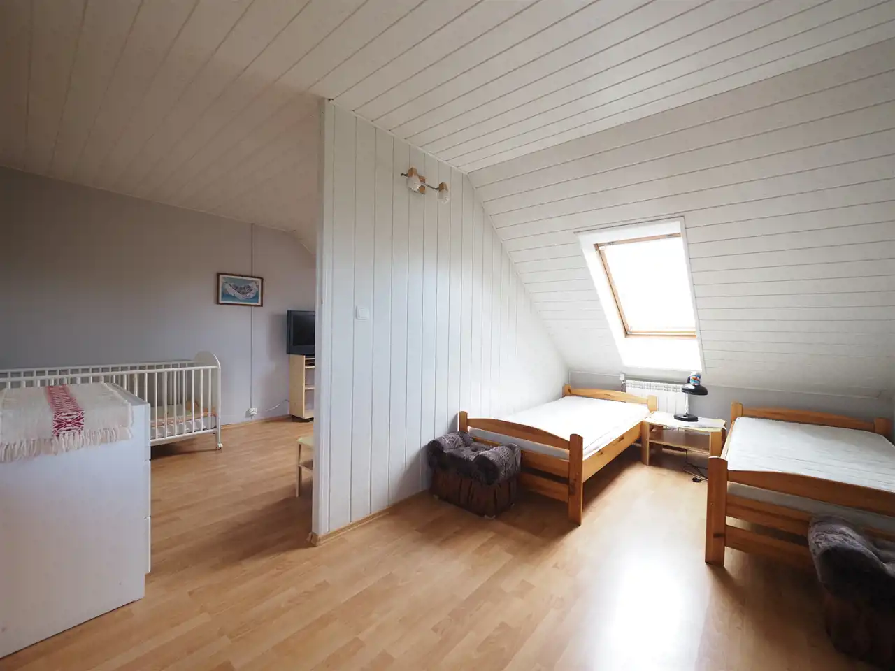 Poddasze (180 m2) składa się z korytarza połączonego z holem (34 m2), 7 pokoi (20 m2, 20 m2, 16 m2, 15 m2, 15 m2, 14 m2, 13 m2), każdy z pokoi posiada prywatną łazienkę. Dwa pokoje posiadają bezpośrednie wyjście na balkon z widokiem na panoramę okolicy, jezioro oraz przepiękne wschody słońca.