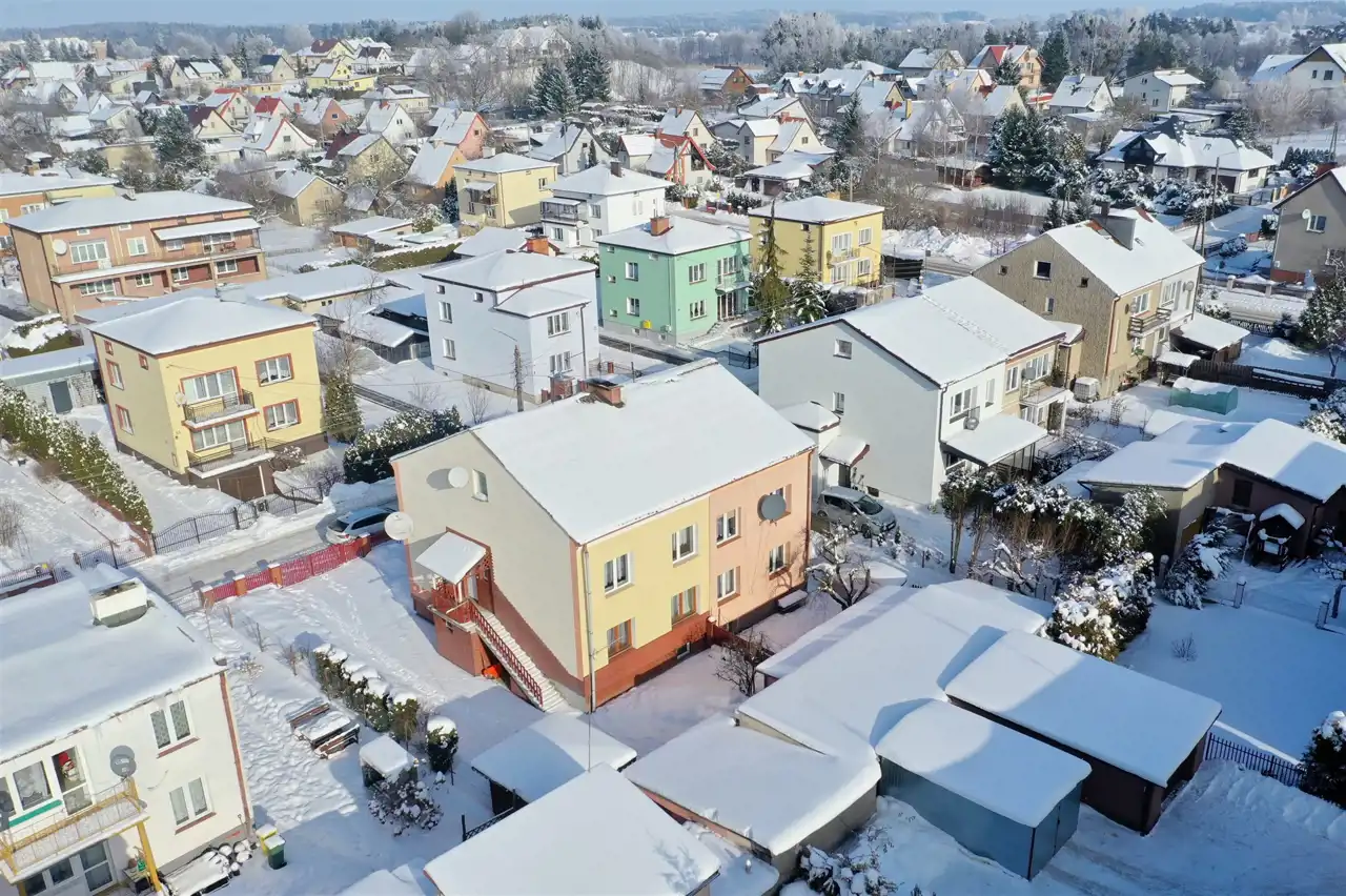 Dom składa się z piwnicy, parteru, piętra oraz poddasza. Parter, piętro oraz piwnica posiadają niezależne wejścia z zewnątrz. Funkcjonalny układ – możliwość wydzielenia dwóch niezależnych mieszkań