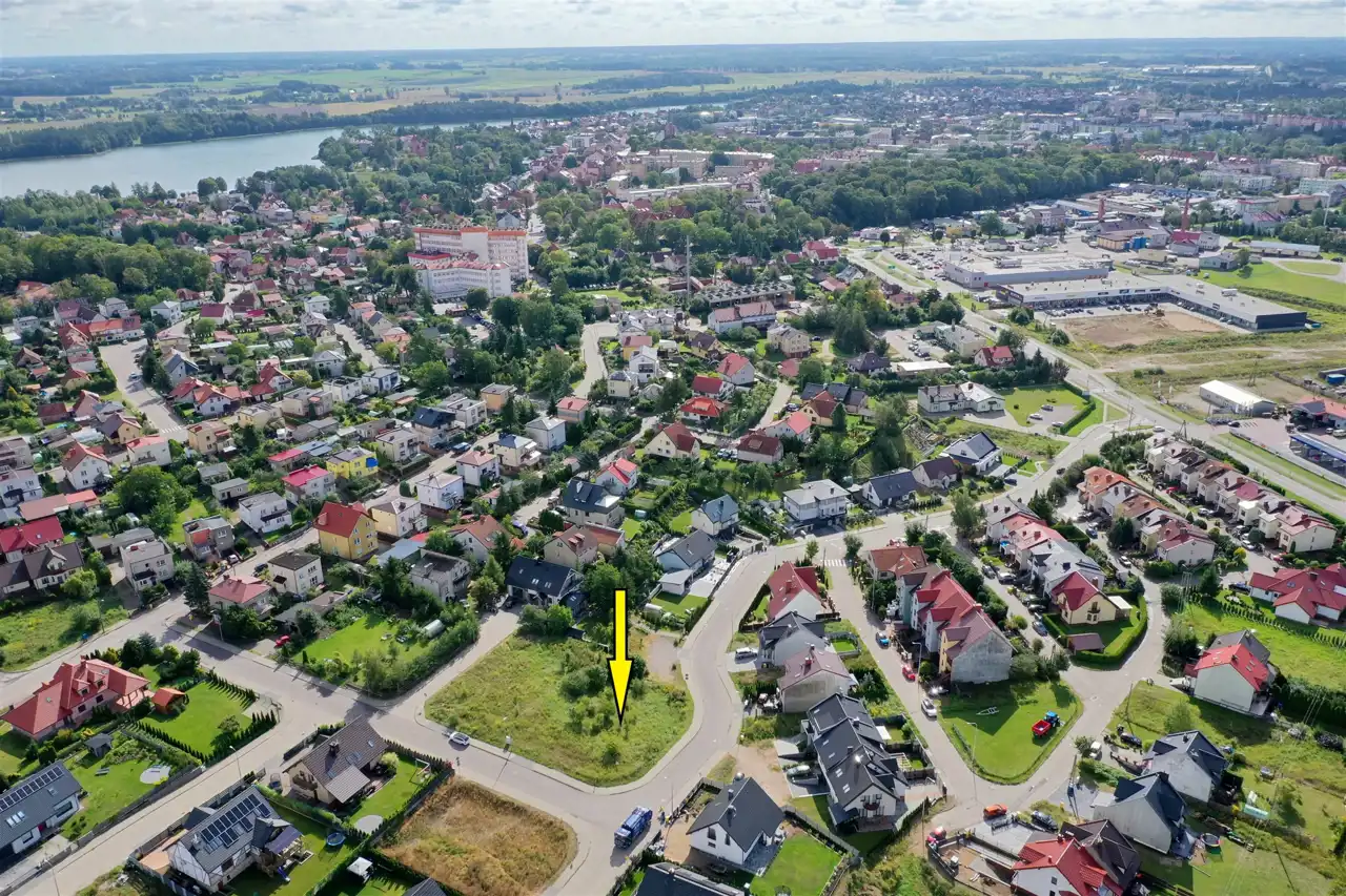 Nieruchomość zlokalizowana jest na spokojnym osiedlu domów jednorodzinnych. Odległość do ścisłego centrum miasta wynosi 1000 metrów natomiast do jeziora 950 metrów w linii prostej.