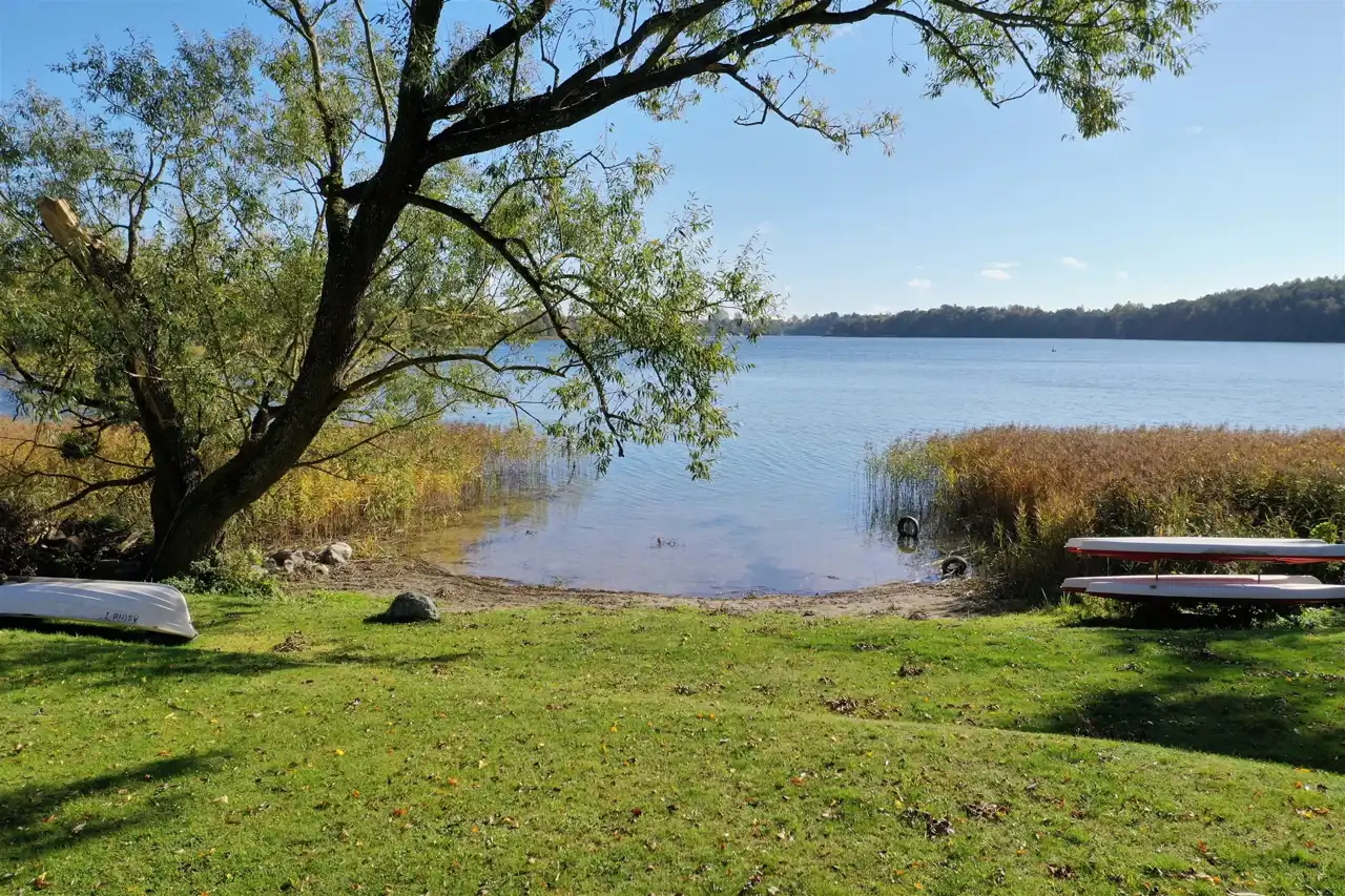 Dużym atutem nieruchomości jest własna działka o powierzchni około 430 m2 z własną 20 metrową linią brzegową Jeziora Dobskiego. Właściciele posiadają pozwoleni na budowe pomostu 60 m2.