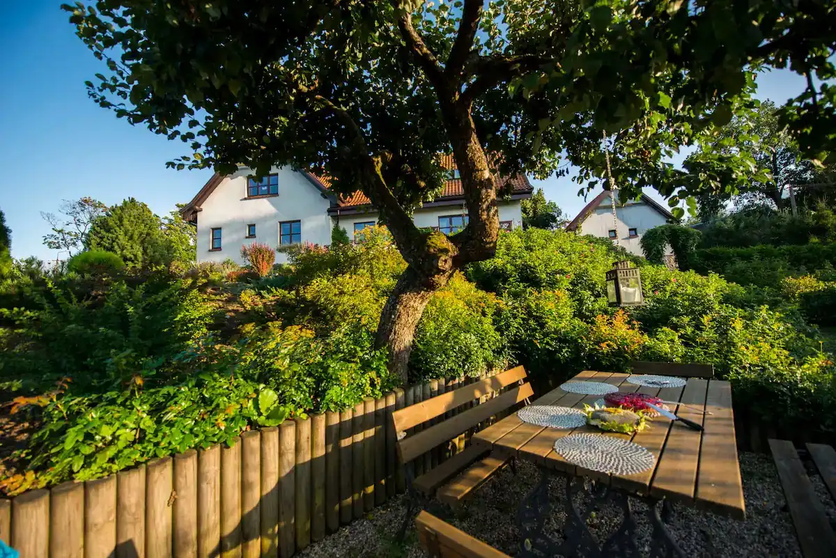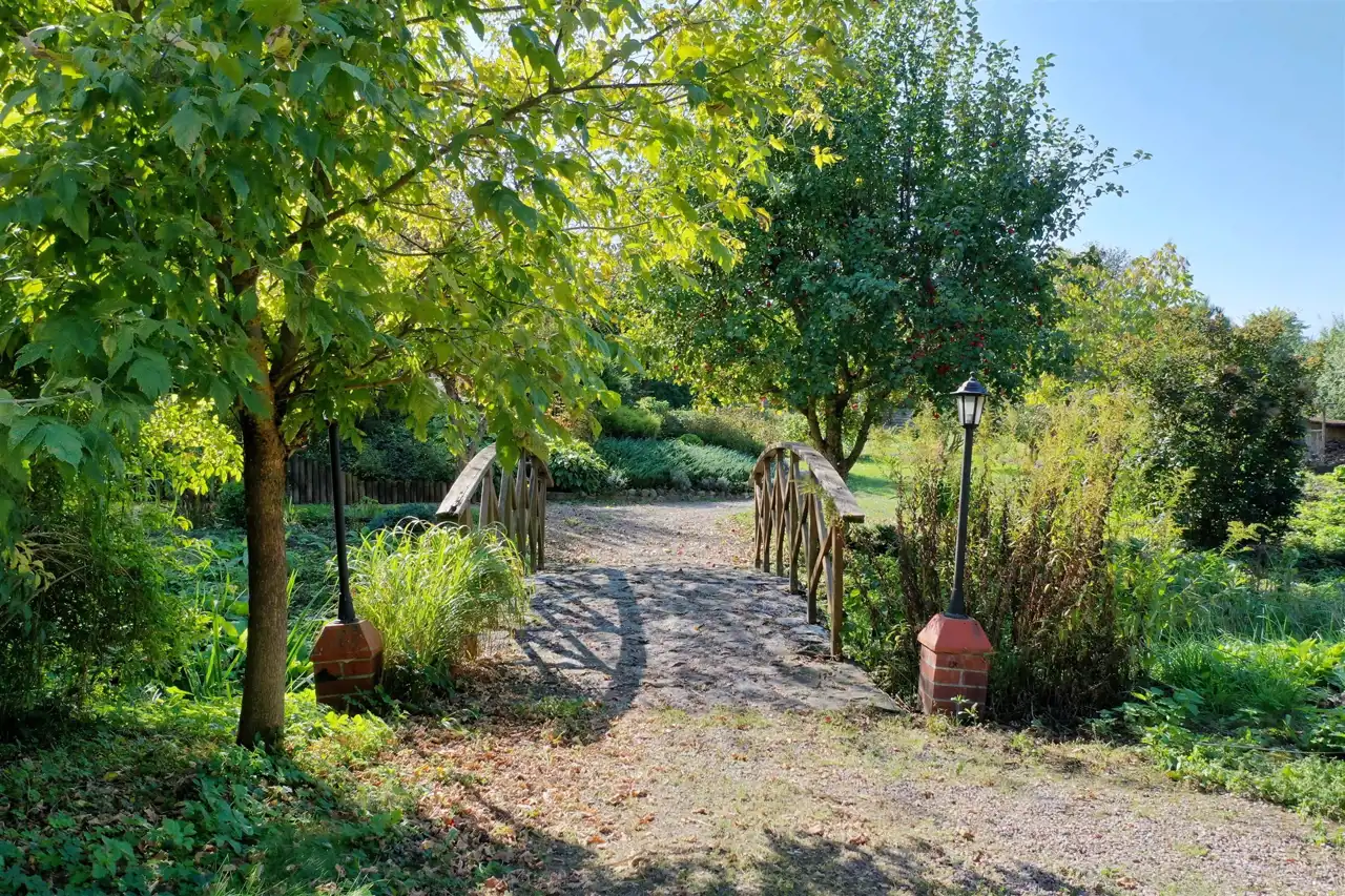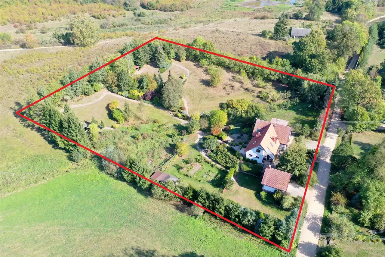Wizytówką nieruchomości jest niewątpliwie piękny, rozległy, pełen harmonii ogród stworzony z miłości do natury. Miejsce gdzie stare łączy się z nowym, wiekowe 100-letnie drzewa współgrają z młodymi drzewami. Łąka z wypielęgnowanym trawnikiem, sad, wszelkiego rodzaju kwiaty i krzewy zarówno owocowe jak i ozdobne. Nie można zapomnieć również o ekologicznym ogrodzie warzywnym. Dodatkowo przez ogród przepływa strumień co nadaje miejscu niepowtarzalność. W ogrodzie znajduje się również budynek zagospodarowywany pod kuchnie letnią, altanka oraz miejsca do grillowania pod starą jabłonką. Dodatkowo zagospodarowana została przestrzeń o charakterze sportowym z miejscem do gry w koszykówkę. Ogród stanowi idealne miejscem do spędzania wolnego czasu w wyjątkowej atmosferze odgłosów natury, z dala od zgiełku miasta.