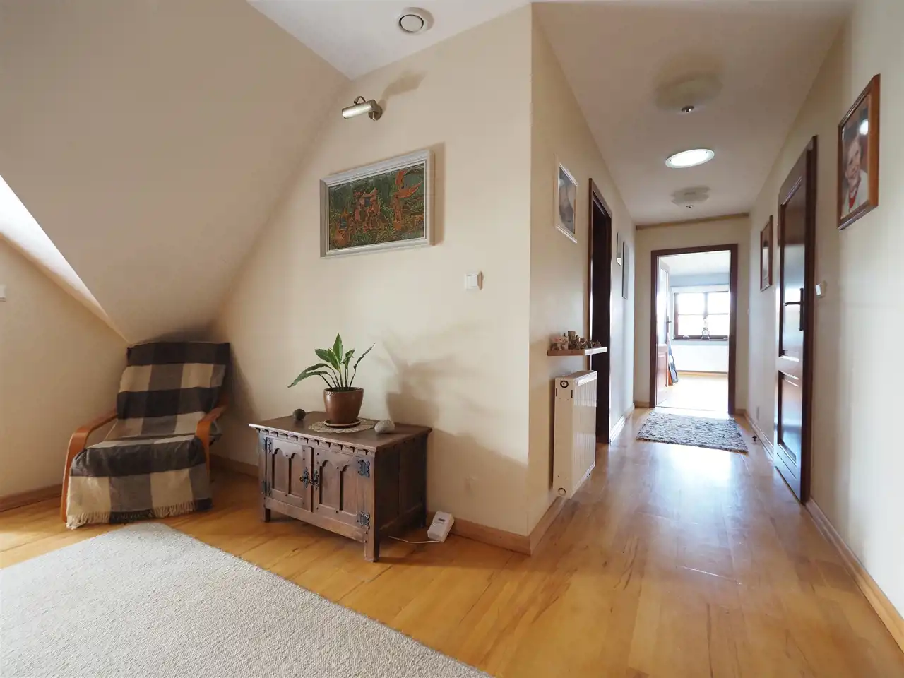 Poddasze składa się z czterech pokoi (22 m2, 18,50 m2, 14 m2, 8,50 m2), łazienki (6 m2), pralni (5 m2), kotłowni (6 m2), klatki schodowej (4 m2), oraz korytarza (14 m2).
