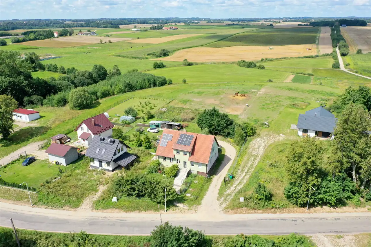 Nieruchomość usytuowana jest w cichej i spokojnej okolicy, na działce o powierzchni 4970 m2. Działka zabudowana jest domem wolnostojącym o powierzchni użytkowej około 163 m2, jest częściowo zagospodarowana.