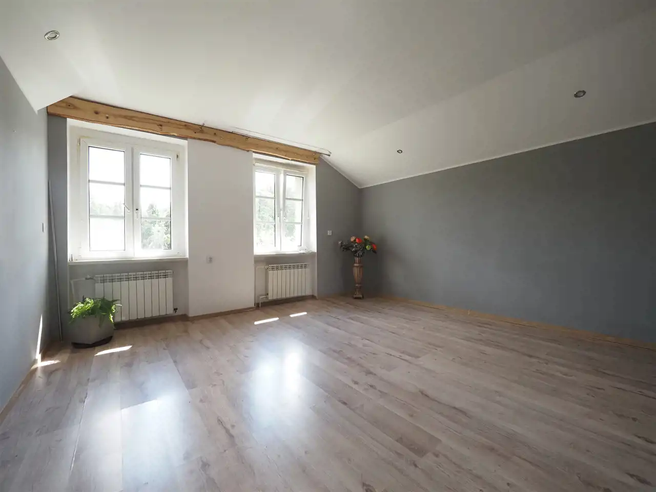 Poddasze zostało częściowe zaadaptowane na funkcje mieszkalne, zagospodarowano duży pokój (21 m2) oraz korytarz (15 m2).