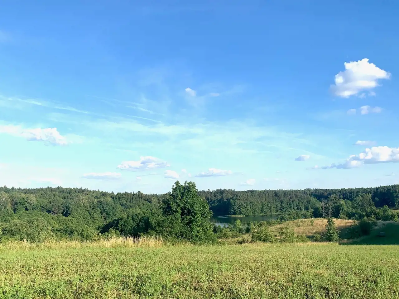 Widok: Niepowtarzalna panorama na jezioro, urokliwe lasy i pagórkowaty, mazurski krajobraz.