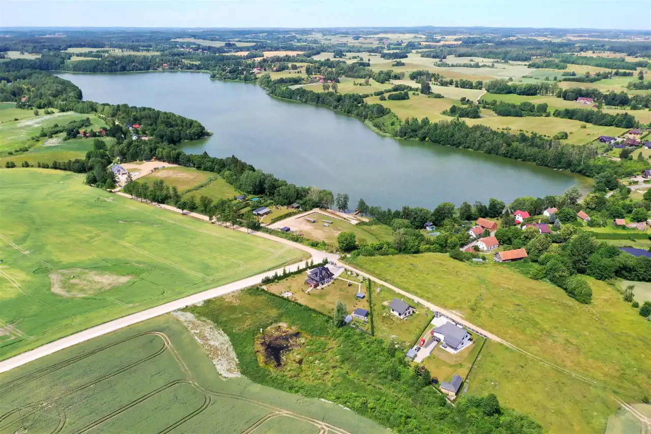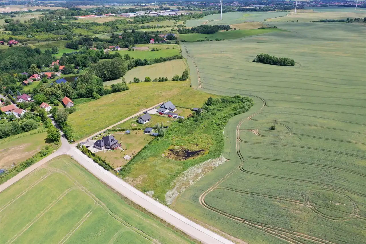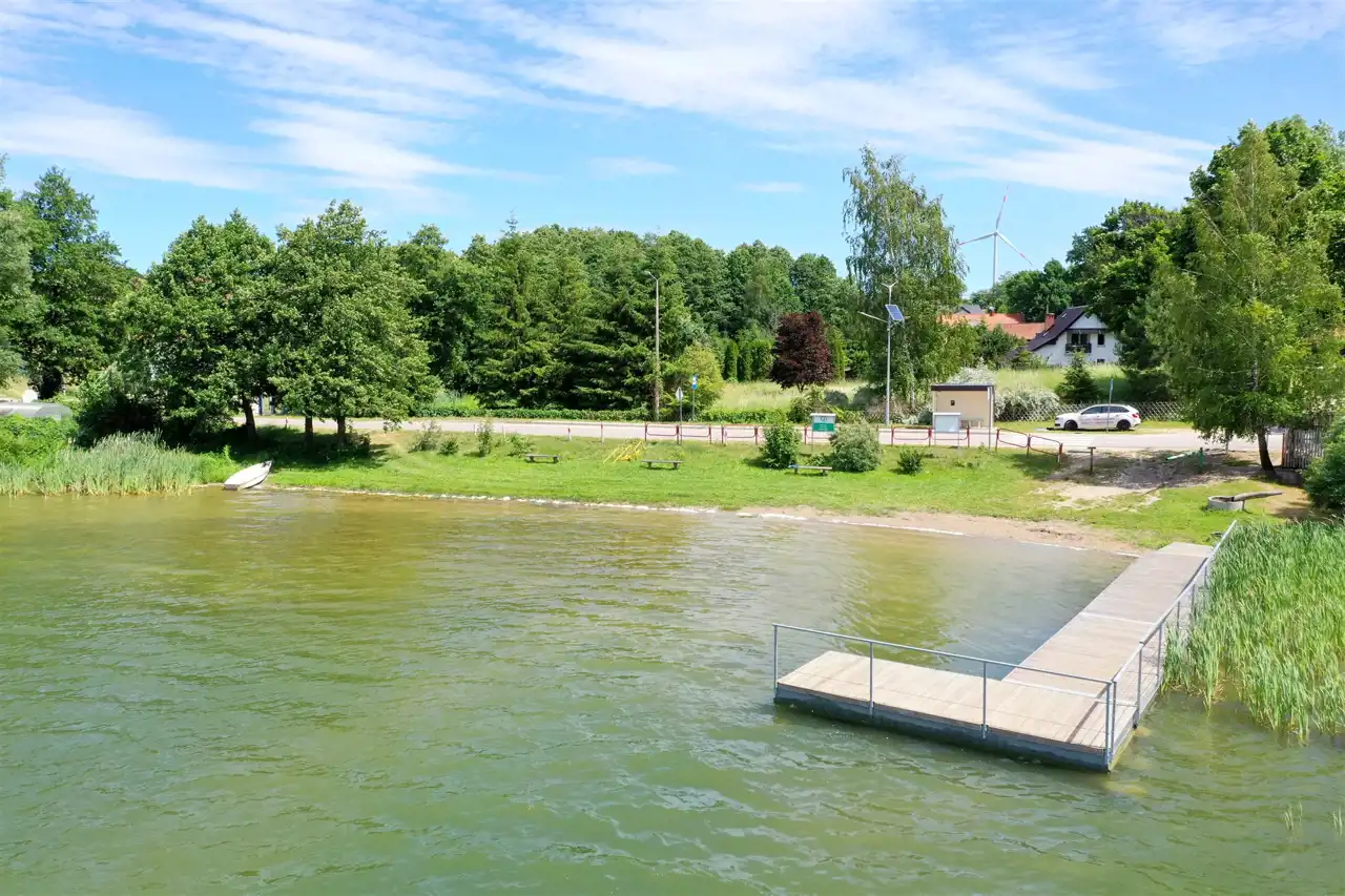 Nieruchomość zlokalizowana jest w spokojnym miejscu, w otoczeniu pól oraz domów jednorodzinnych. W odległości zaledwie 400 metrów znajduje się ładnie zagospodarowana gminna plaża. Miejsce to jest idealne do zamieszkania i cieszenia się urokami wsi oraz widokiem na malowniczą panoramę okolicy.