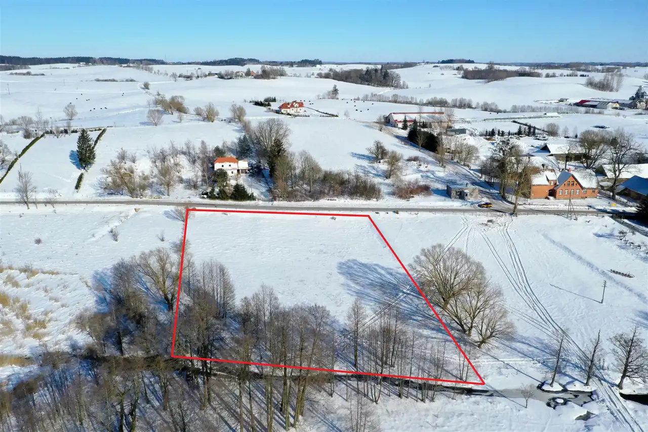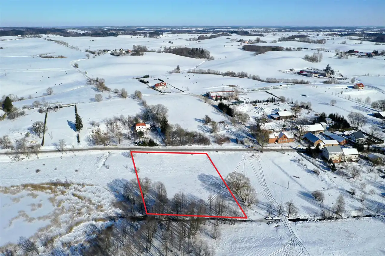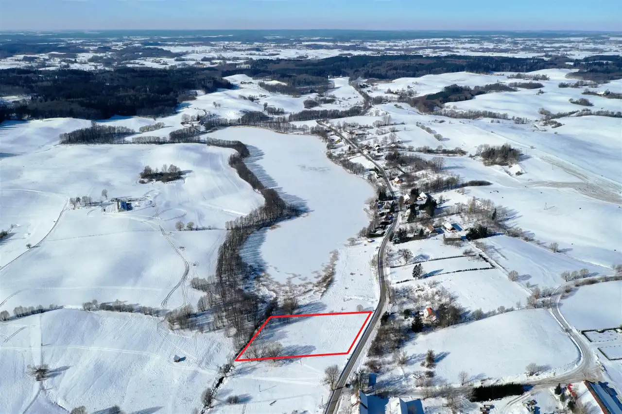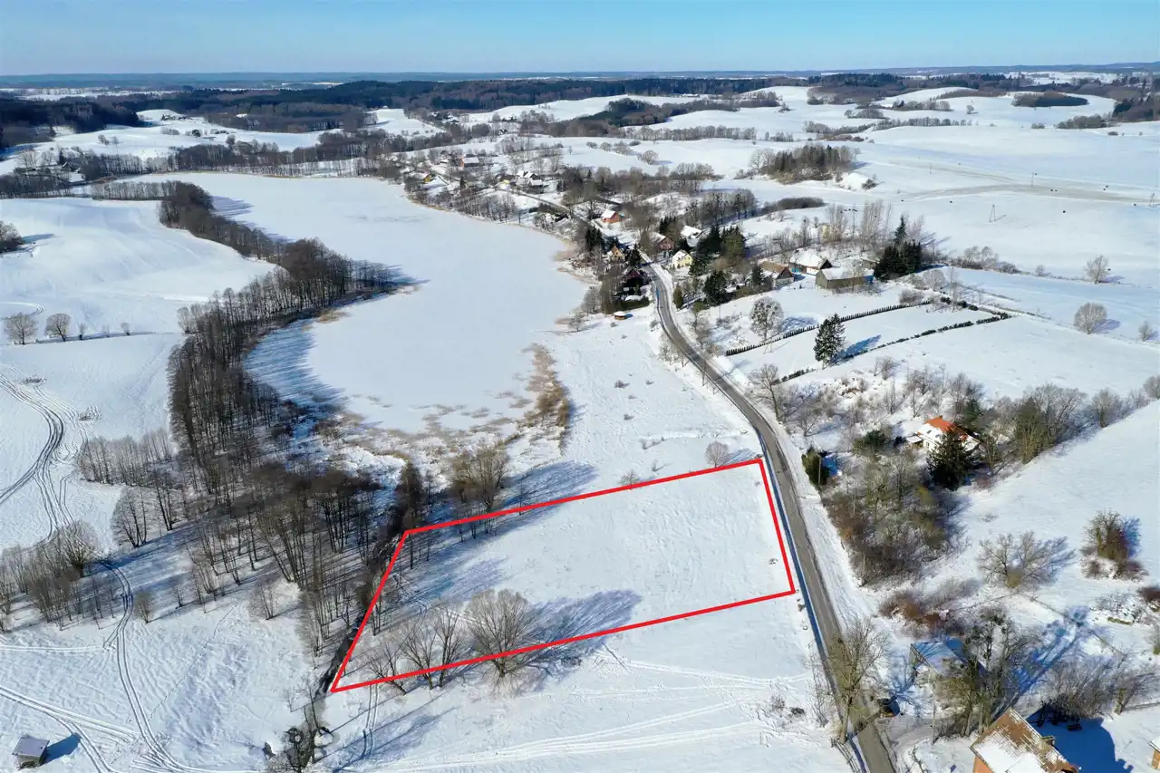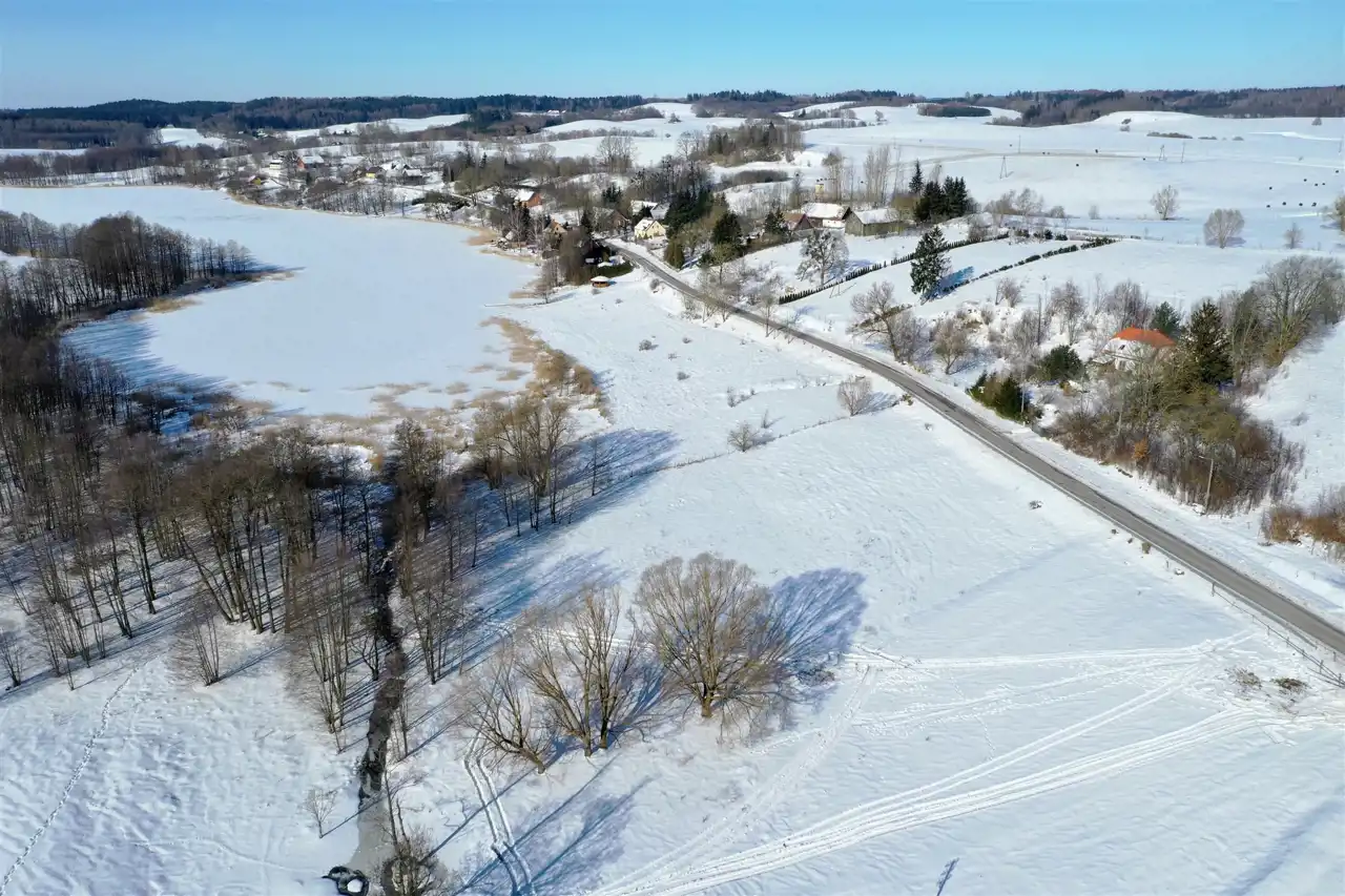 Nieruchomość usytuowana jest w malowniczej, kameralnej mazurskiej wsi, w otoczeniu zieleni, lasów oraz zabudowy jednorodzinnej. Działka graniczy z terenem jeziora – do linii brzegowej jest zaledwie 100 metrów. Z nieruchomości rozpościera się piękny widok na jezioro oraz pagórkowatą panoramę okolicy.