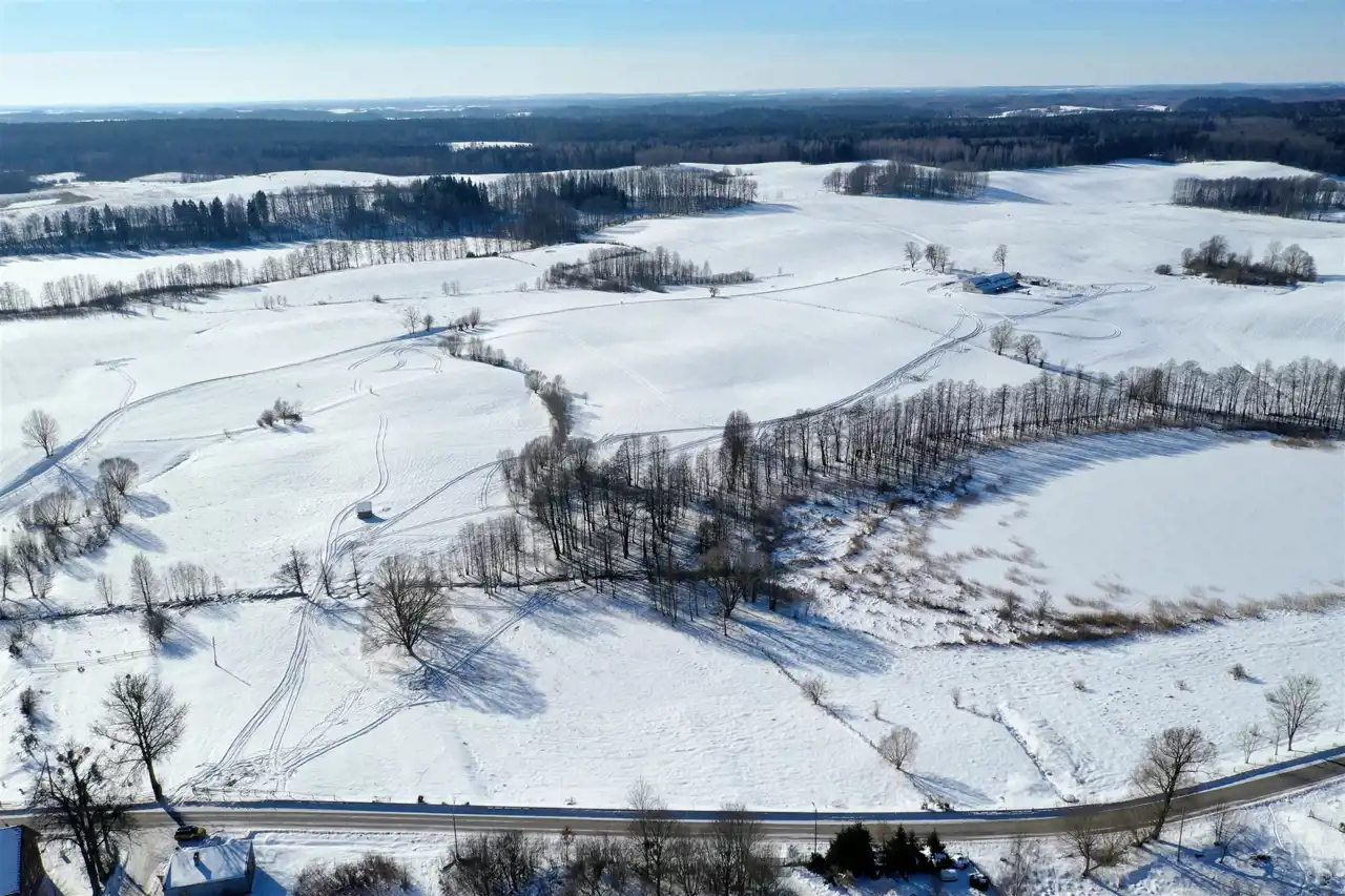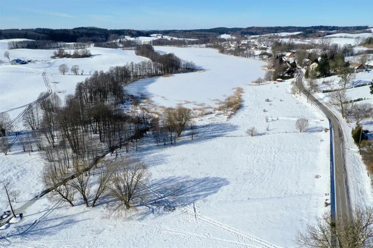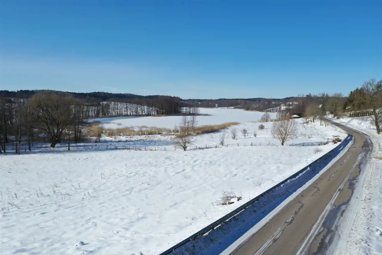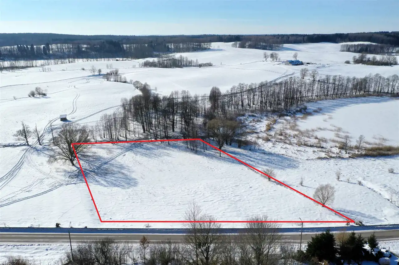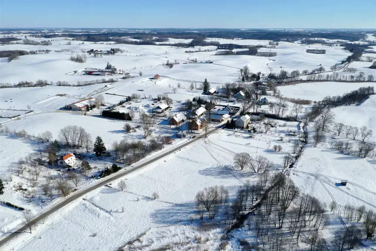 Nieruchomość usytuowana jest w malowniczej, kameralnej mazurskiej wsi, w otoczeniu zieleni, lasów oraz zabudowy jednorodzinnej. Działka graniczy z terenem jeziora – do linii brzegowej jest zaledwie 100 metrów. Z nieruchomości rozpościera się piękny widok na jezioro oraz pagórkowatą panoramę okolicy.