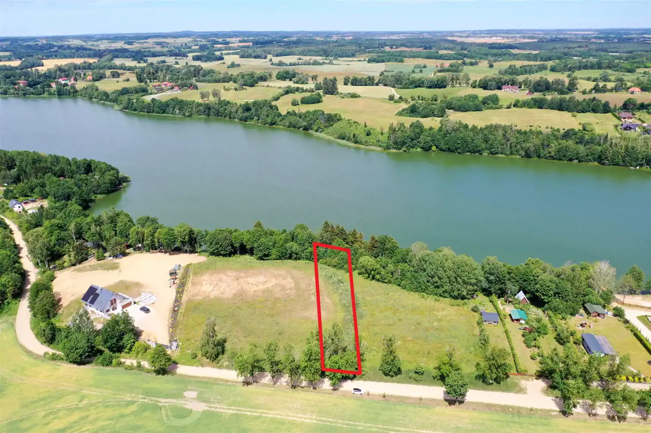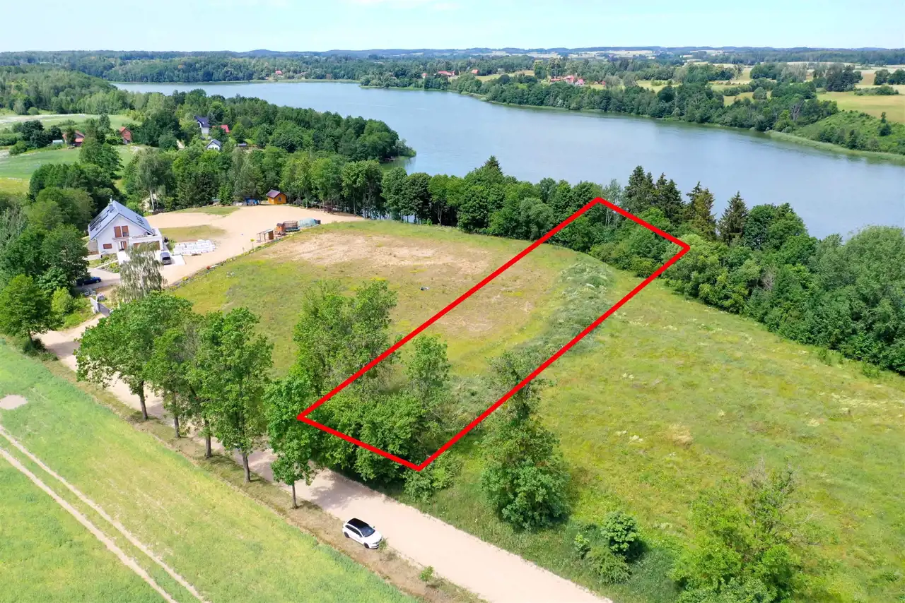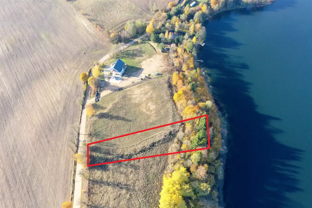 Działka ma regularny kształt, poszerza się w kierunku jeziora. Teren działki płaski, stromy przy linii brzegowej jeziora, częściowo porośniętej krzewami i samosiewami drzew oraz własnym lasem. Dojazd do działki odbywa się poprzez utwardzoną drogę gminną. Najbliższą okolicę stanowią grunty rolne, jezioro, działki niezabudowane oraz zabudowania jednorodzinne.