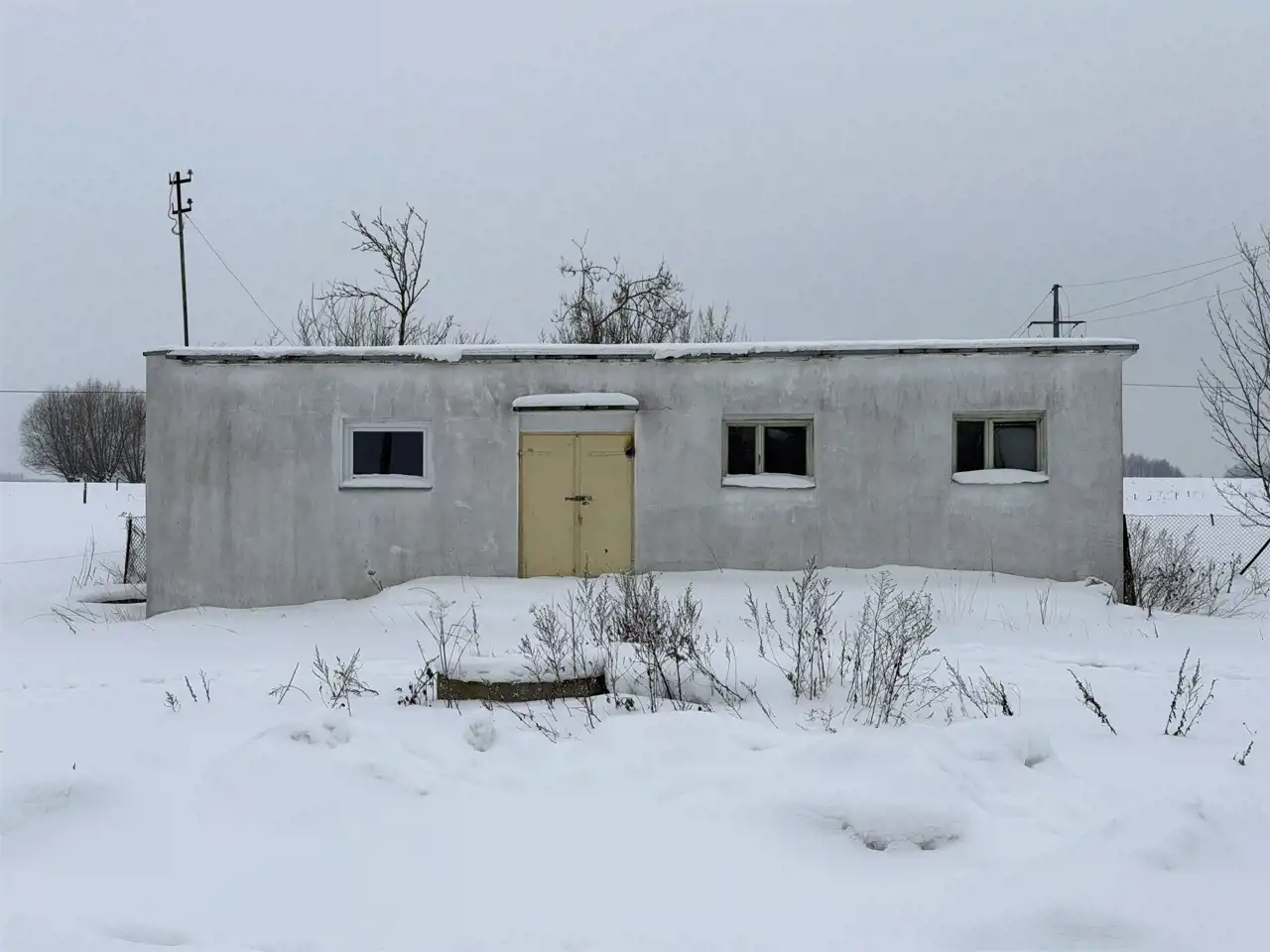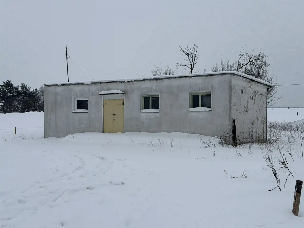 Murowany, parterowy budynek został wybudowany w 1970 roku – pełnił funkcję punktu skupu mleka. Fundamenty budynku są betonowe, ściany z pustaków i cegieł. Stropodach konstrukcji żelbetowej, kryty papą. Posadzki cementowe, częściowo pokryte terakotą.