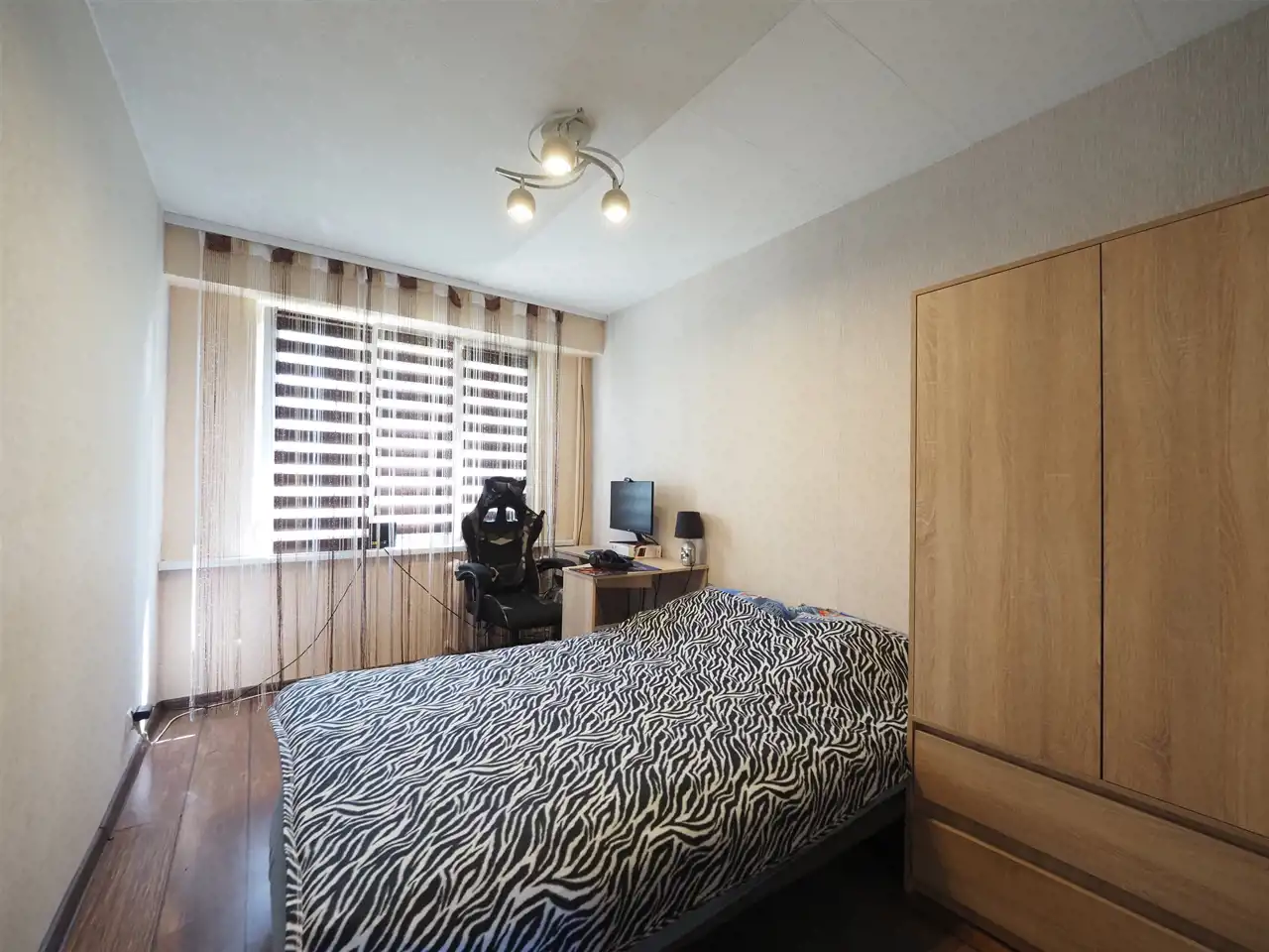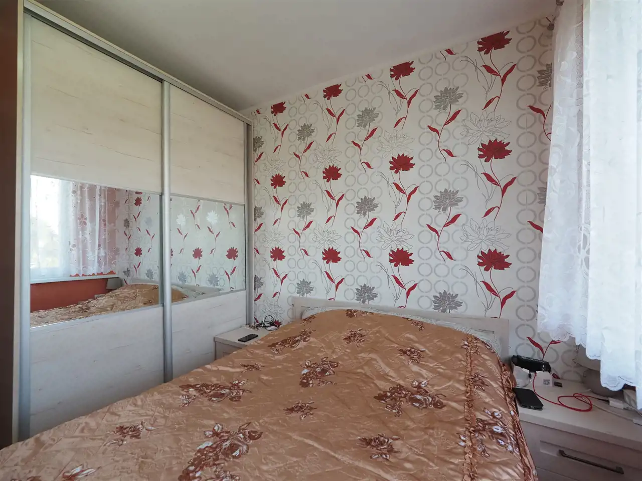 Mieszkanie usytuowane jest na parterze w dwupiętrowym bloku. Składa się z trzech pokoi (26 m2, 10 m2, 8 m2), kuchni (7 m2), przedpokoju (7 m2), łazienki (2.5 m2), WC (1 m2), z największego z pokoi znajduje się wyjście na balkon (5.5 m2). Do mieszkania przynależy duża piwnica.