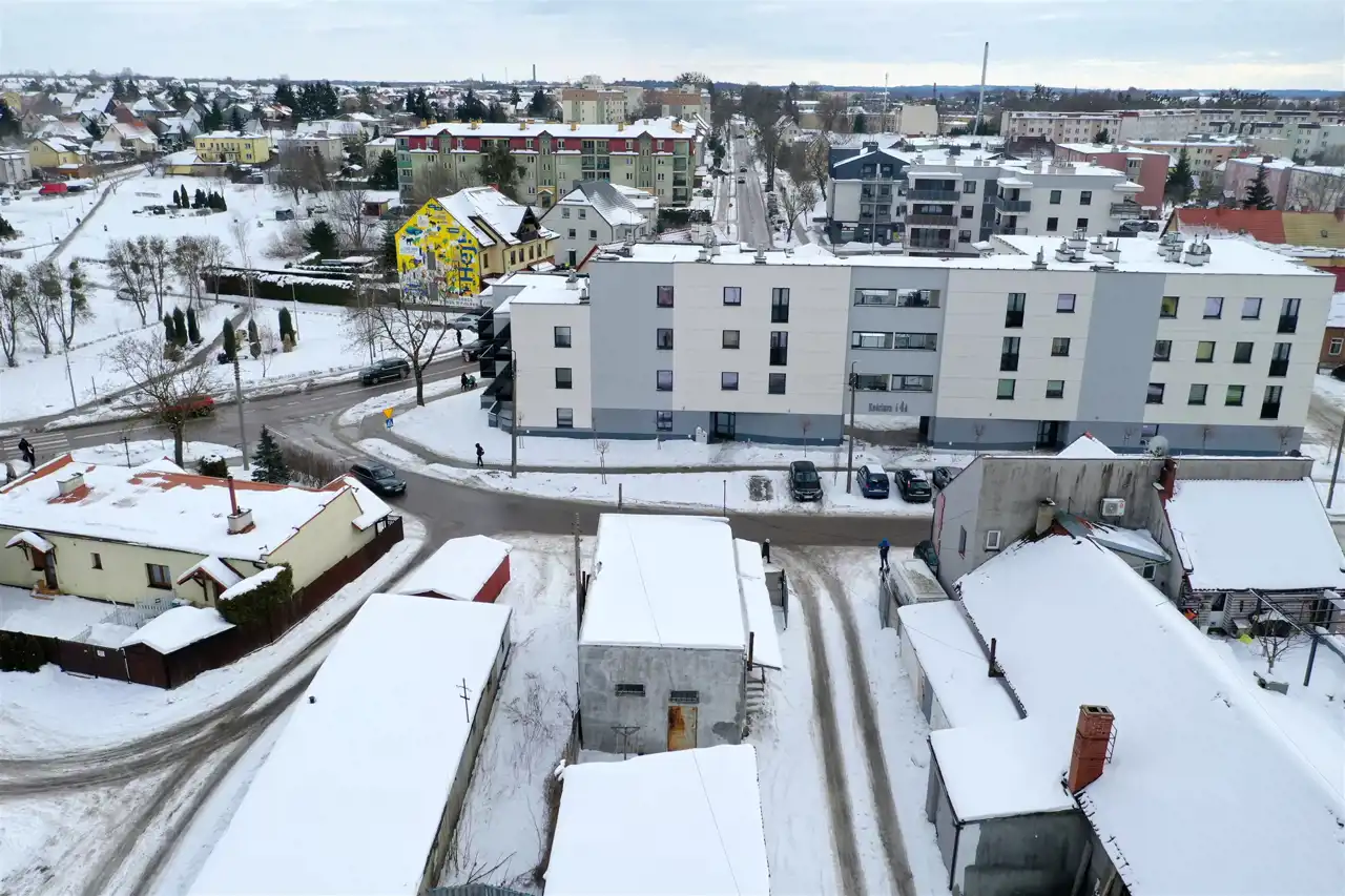 Budynek położony jest w bardzo atrakcyjnej i dogodnej lokalizacji – zaledwie około 400 metrów od ścisłego centrum miasta, co zapewnia szybki i łatwy dostęp do najważniejszych punktów handlowych, usługowych oraz administracyjnych. W najbliższej okolicy znajdują się liczne sklepy oraz punkty usługowe.