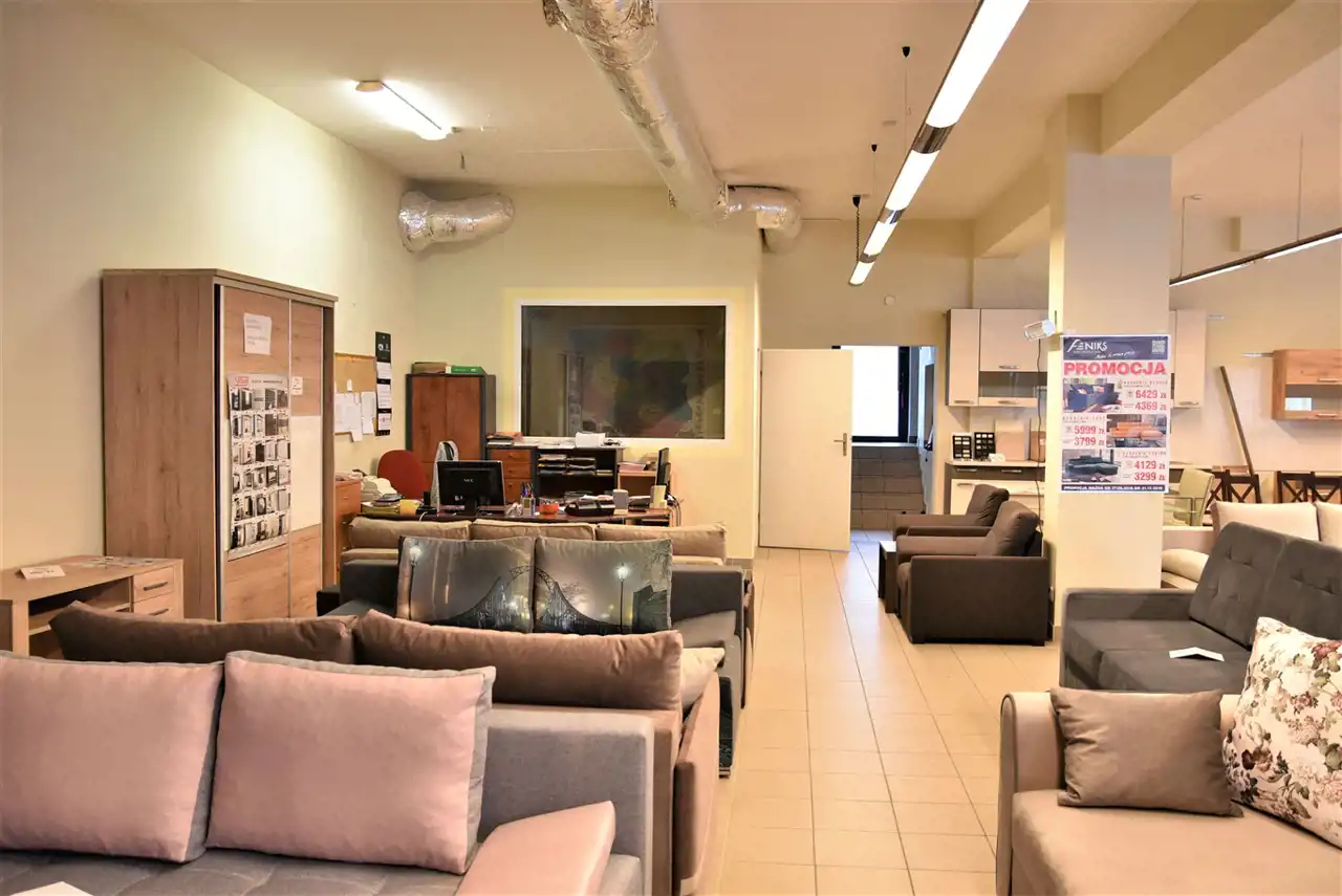 Lokal mieści się na parterze. Składa się z dużej powierzchni handlowo - usługowej, biura, zaplecza, wc. Wejście do lokalu dla klientów znajduje się przy bardzo ruchliwej ulicy.
