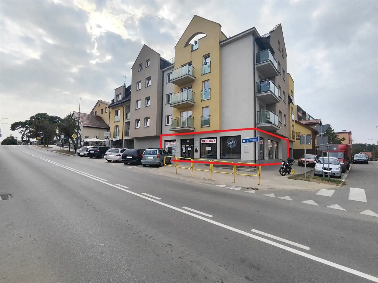 Budynek w którym znajduje się przedmiotowy lokal graniczy bezpośrednio z chodnikiem o dużym natężeniu ruchu, a także pozwala na swobodny dostęp do pobliskich sklepów. Miejsca parkingowe znajdują naprzeciw i z boku budynku.