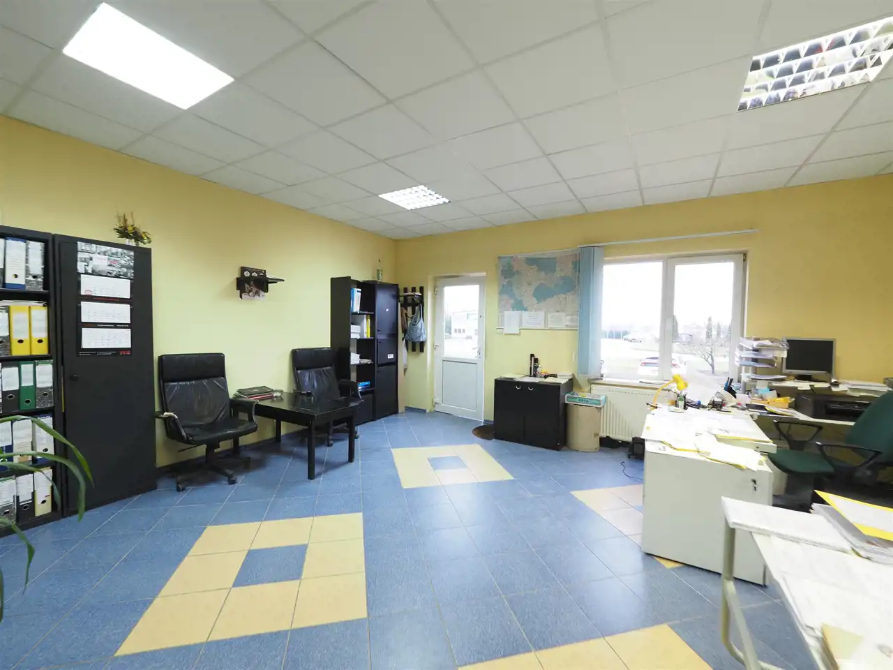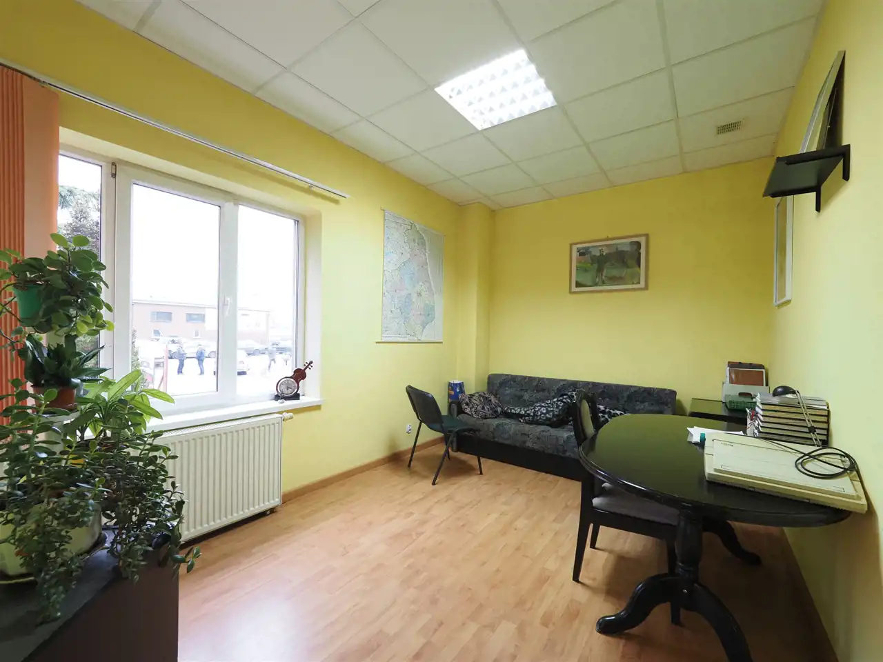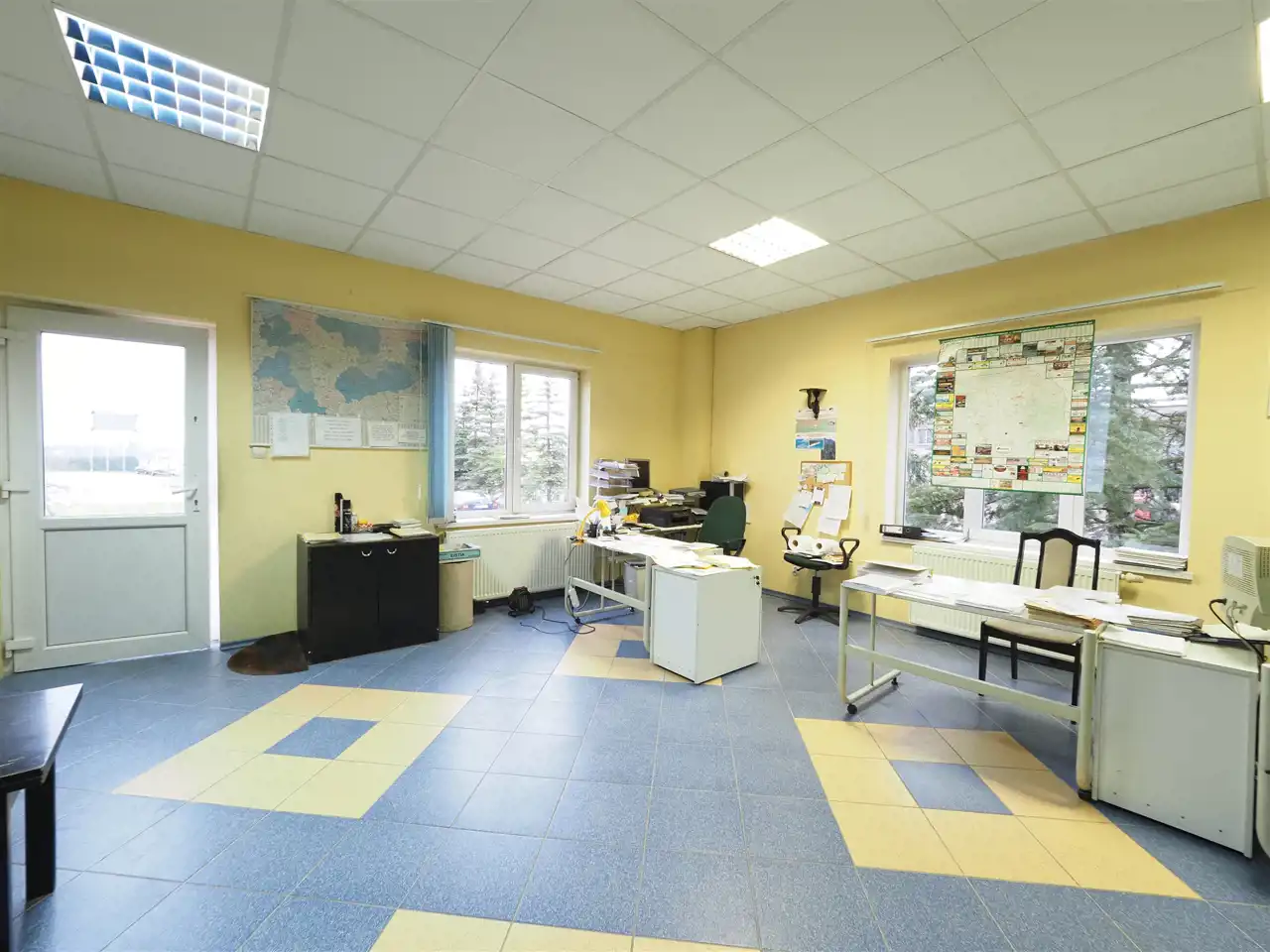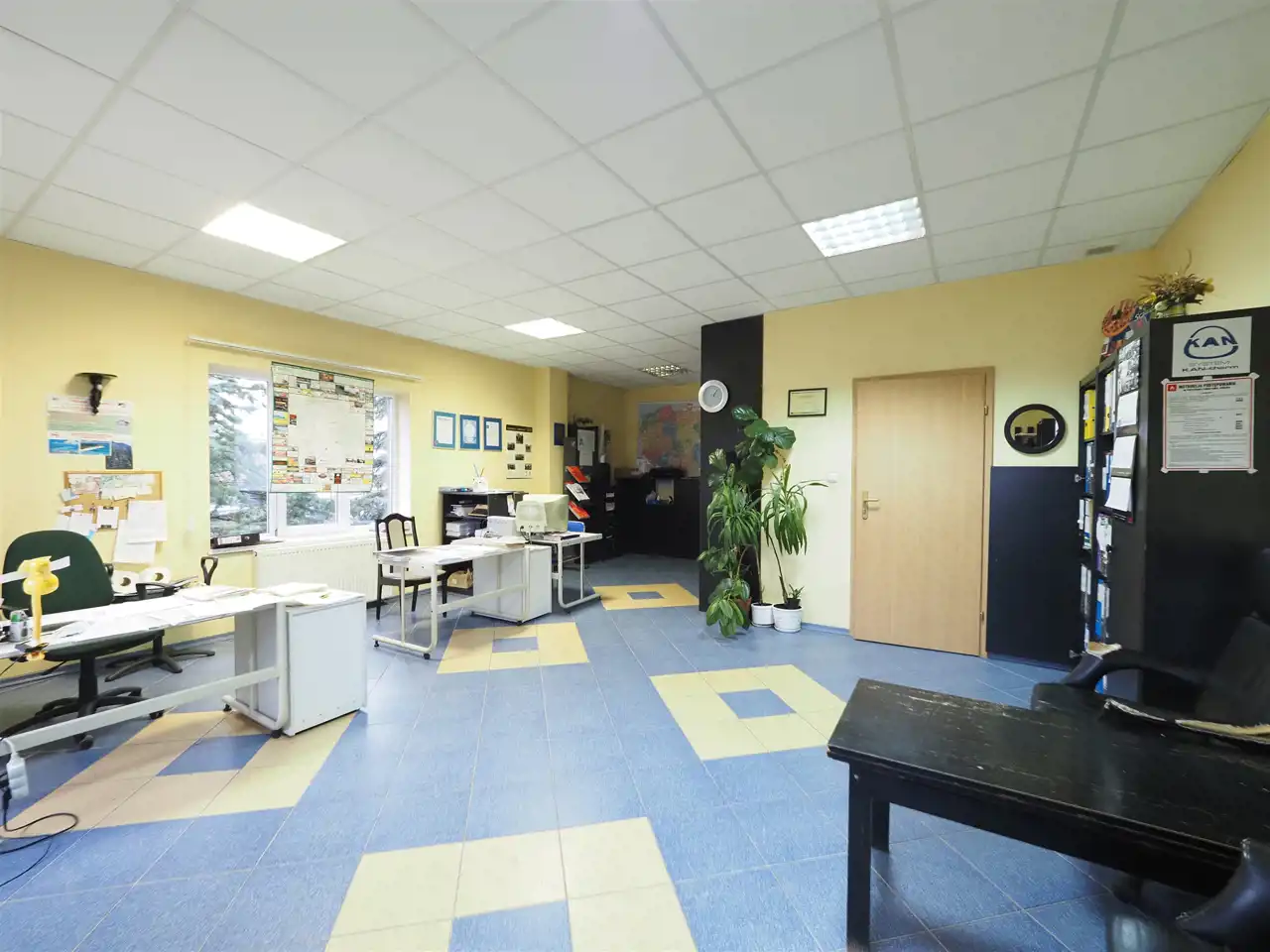 Część biurowa (69 m2), składa się z dwóch pomieszczeń biurowych (40 m2, 12 m2), pomieszczenia gospodarczego (8 m2), łazienki z wc i prysznicem (6 m2), pomieszczenia socjalnego (3.5 m2).