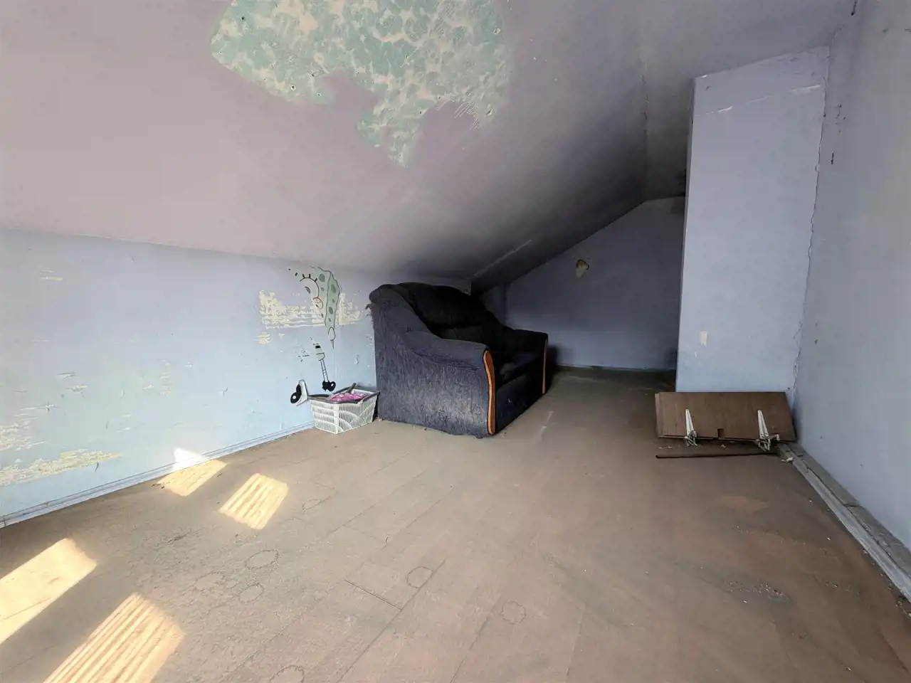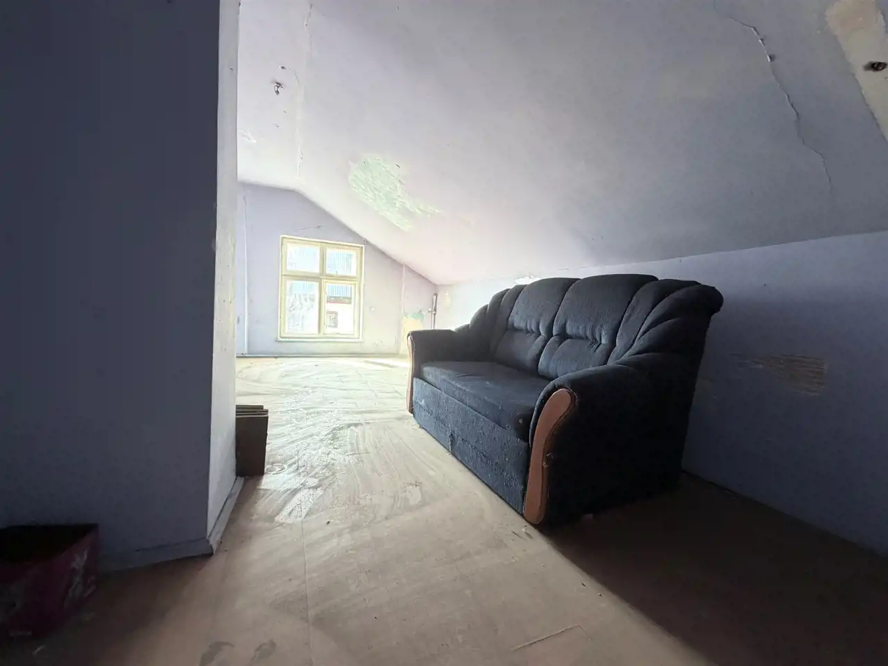 Mieszkanie usytuowane jest na parterze w kamienicy. Składa się z kuchni (9,5 m2), pokoju (17 m2), (łazienki (2,5 m2), dodatkowo na poddaszu znajduje się pokój o powierzchni 11,41 m2. Wszystkie okna w mieszkaniu są drewniane. Podłogi wyłożone są panelami w łazience natomiast terakotą. Mieszkanie wymaga generalnego remontu.