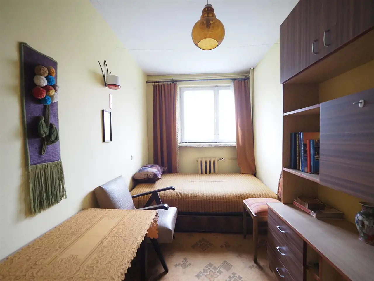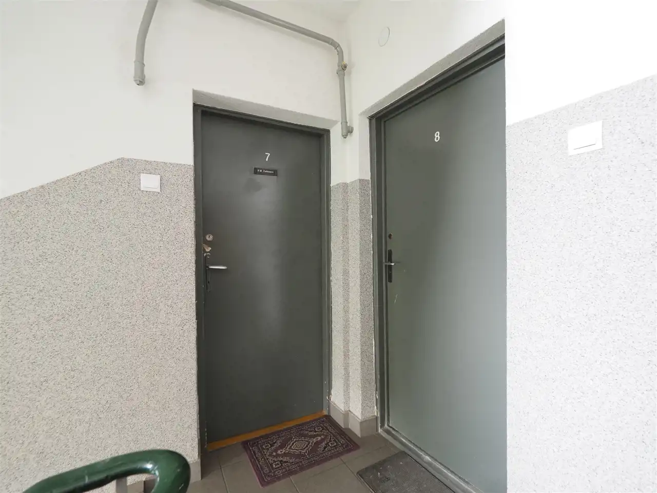 Mieszkanie usytuowane jest na drugim piętrze w trzypiętrowym bloku. Składa się z salonu (14 m2) z wyjściem na loggie (2,3 m2), łazienki (2,2 m2), kuchni połączonej z przedpokojem (4,6 m2) oraz dodatkowego pokoju (8,5 m2), który ma oddzielne wejście z klatki schodowej. Do mieszkania przynależy piwnica (5,4 m2).