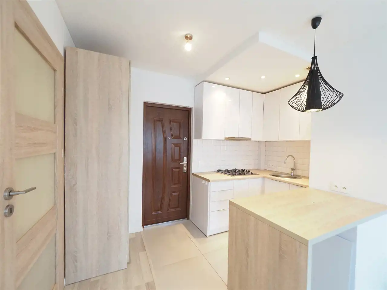 Mieszkanie przeszło kapitalny remont, jest jasne i słoneczne. Ładna, biała kuchnia pod zabudowę, wyposażona jest w niezbędny sprzęt AGD. Łazienka nowoczesna, ustawna. Podłogi w kuchni i łazience wyłożone zostały terakotą, natomiast w pokoju położone są jasne panele. Nowa instalacja elektryczna i hydrauliczna. Mieszkanie jest w bardzo dobrym stanie technicznym, gotowe do zamieszkania.