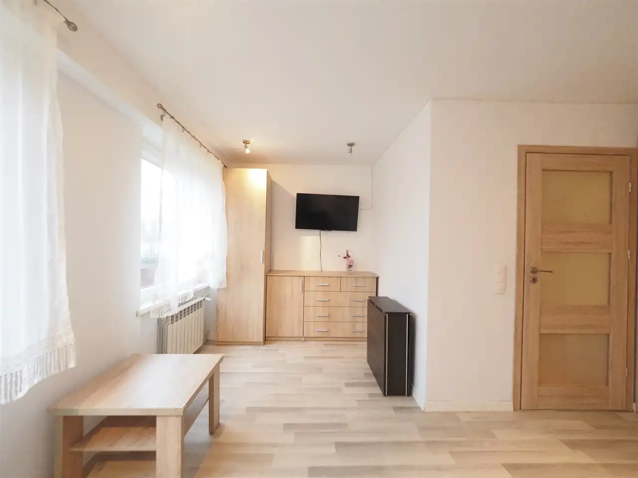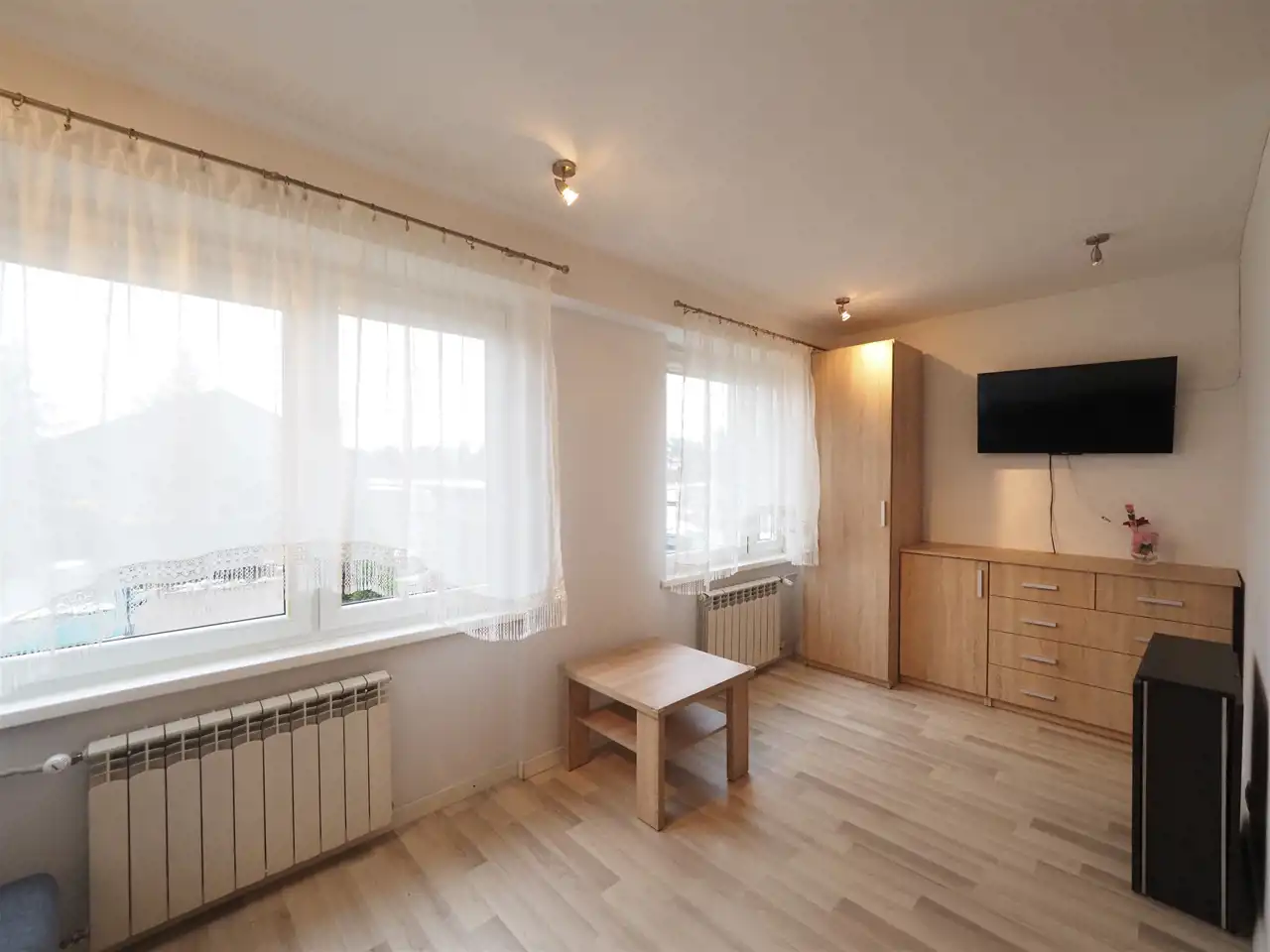 Mieszkanie usytuowane jest na parterze w trzypiętrowym bloku. Składa się z kuchni (6,2 m2) otwartej na salon (13 m2) oraz łazienki (3,8 m2). Miejsca parkingowe znajduję się bezpośrednio przed blokiem.