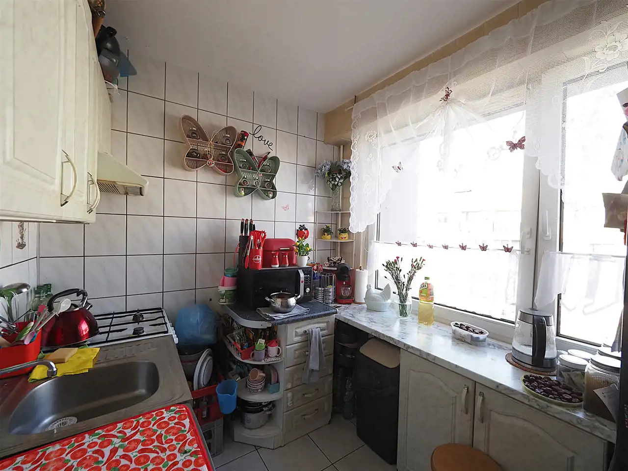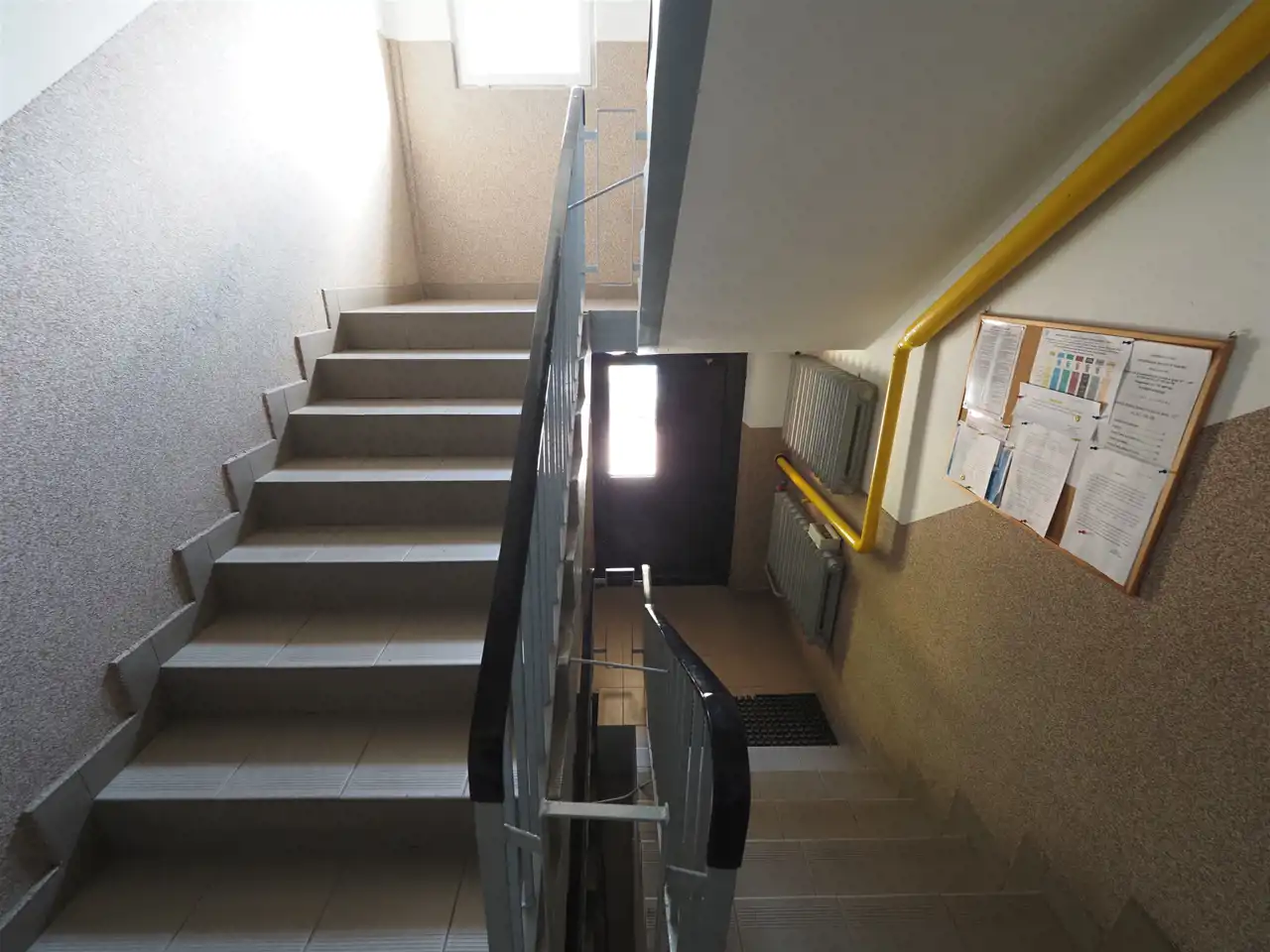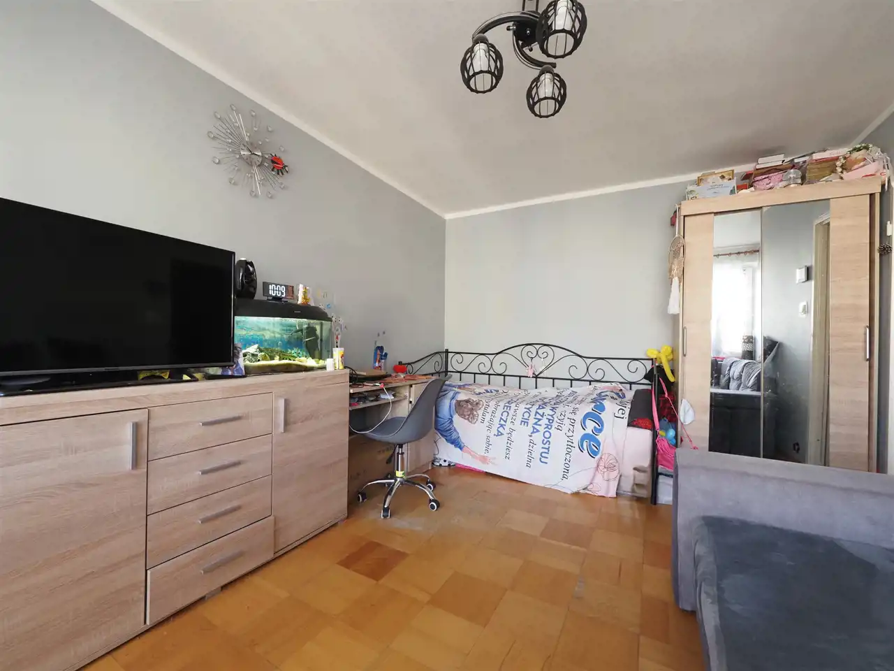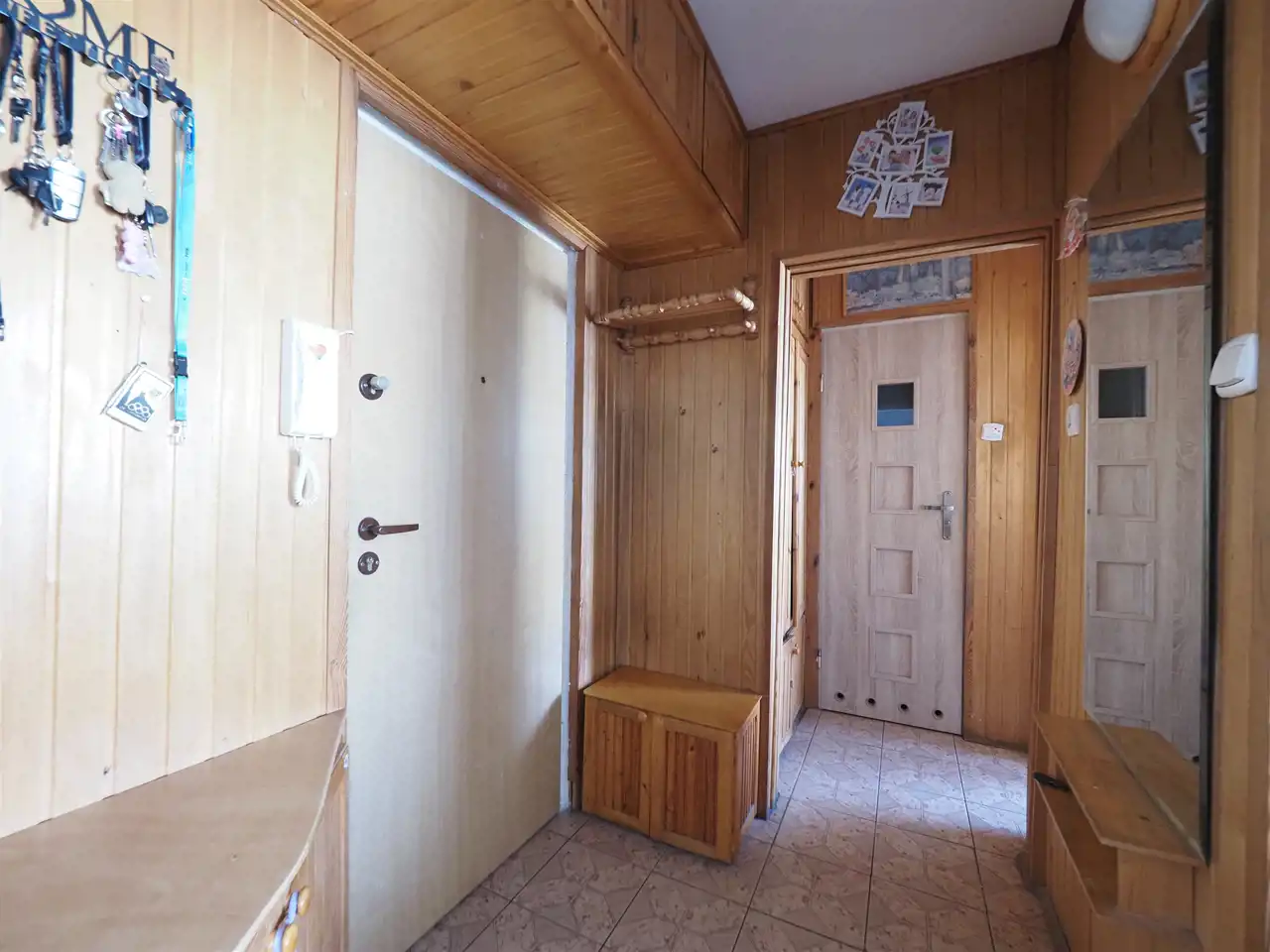 Mieszkanie usytuowane jest na trzecim piętrze w czteropiętrowym bloku. Składa się z dwóch pokoi (15,50 m2, 6 m2), kuchni (5,4 m2), łazienki (3 m2), przedpokoju (4,50 m2). Z większego pokoju znajduje się wyjście na zabudowany balkon o powierzchni 5,50 m2. Do mieszkania przynależy piwnica o powierzchni 4,70 m2.