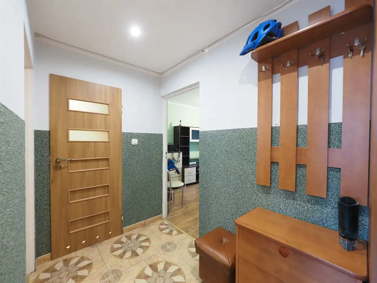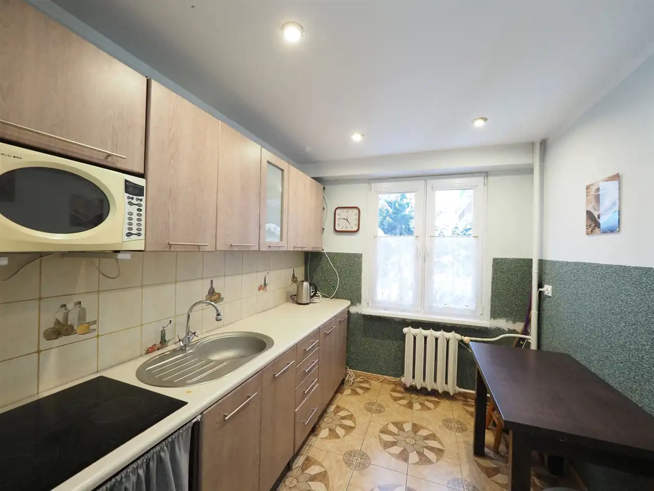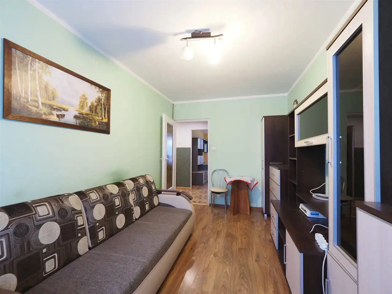 Układ pomieszczeń wygodny i rozkładowy. Wszystkie okna w mieszkaniu są plastikowe, podłogi w pokojach wyłożone panelami, w łazience, kuchni i przedpokoju - terakotą. Lokal wymaga odświeżenia.
