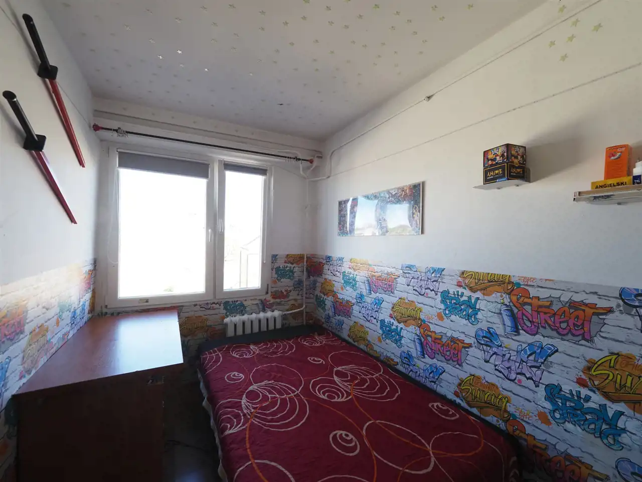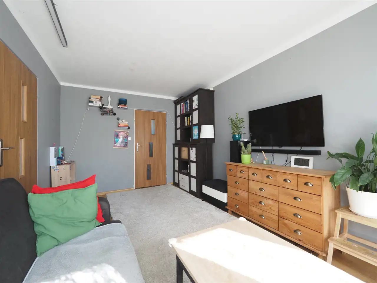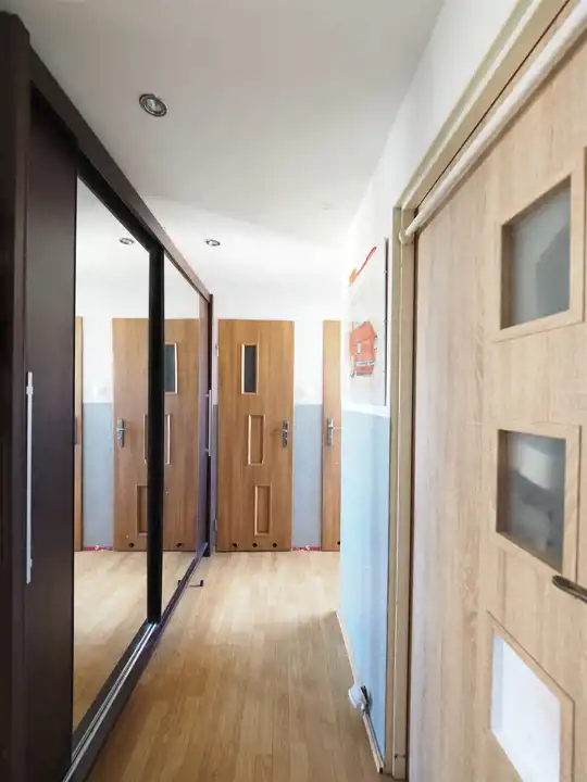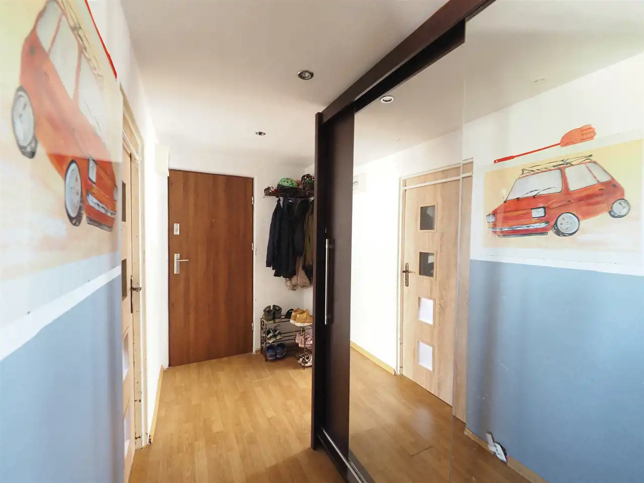 Mieszkanie usytuowane jest na trzecim piętrze w trzypiętrowym bloku. Składa się z jasnej kuchni (7,5 m2), salonu (13,5 m2), dwóch pokoi (10 m2 i 7 m2), korytarza (6,5 m2), łazienki (3 m2) oraz WC (1 m2).