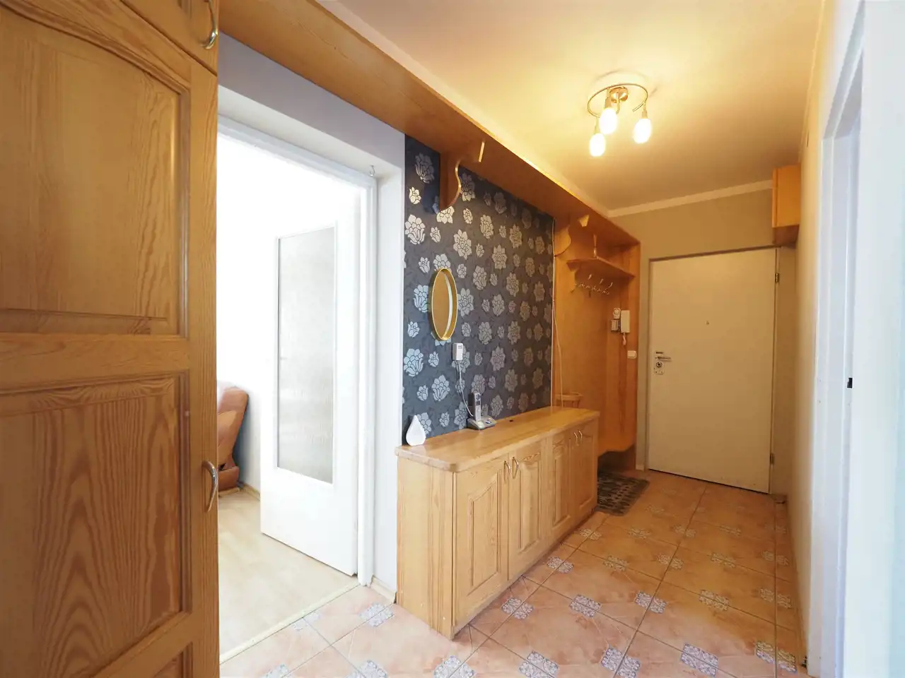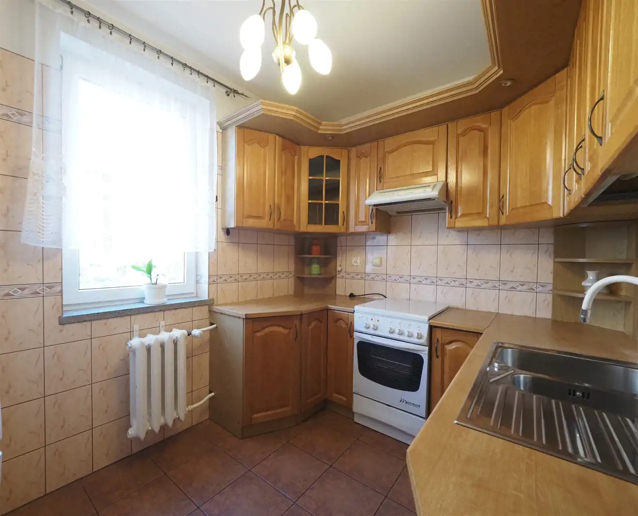 Mieszkanie jest w dobrym stanie technicznym, gotowe do zamieszkania. Wszystkie okna w mieszkaniu są plastikowe, podłogi wyłożone terakotą oraz panelami. Kuchnia i łazienka wykończone są glazurą i terakotą. Zabudowa kuchni wraz z AGD oraz szafki w przedpokoju wliczone są w cenę mieszkania.