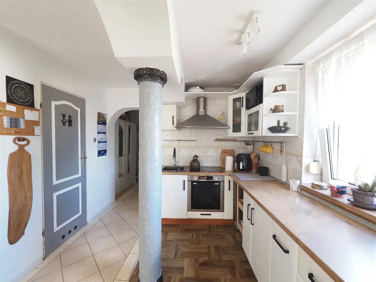 Wszystkie okna wymienione na plastikowe, podłogi w pokojach wyłożone są panelami w pozostałych pomieszczeniach terakotą. Łazienka wykończona jest glazurą i terakotą. Lokal mieszkalny ogrzewany jest klimatycznym kominkiem z rozprowadzeniem, woda ogrzewana jest bojlerem elektrycznym. Mieszkanie jest w dobrym stanie technicznym, gotowe do zamieszkania. Układ pomieszczeń wygodny i rozkładowy. Instalacja elektryczna trójfazowa.