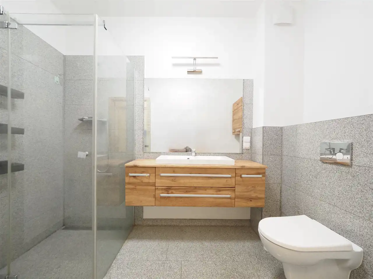 Mieszkanie w nowoczesnym stylu, gotowe do zamieszkania, nie wymaga wkładu finansowego. Układ pomieszczeń wygodny i rozkładowy. Wnętrze wykończone materiałami wysokiej jakości. Podłogi w całym mieszkaniu wyłożone zostały terakotą. Łazienka wykończona jest glazurą i terakotą.