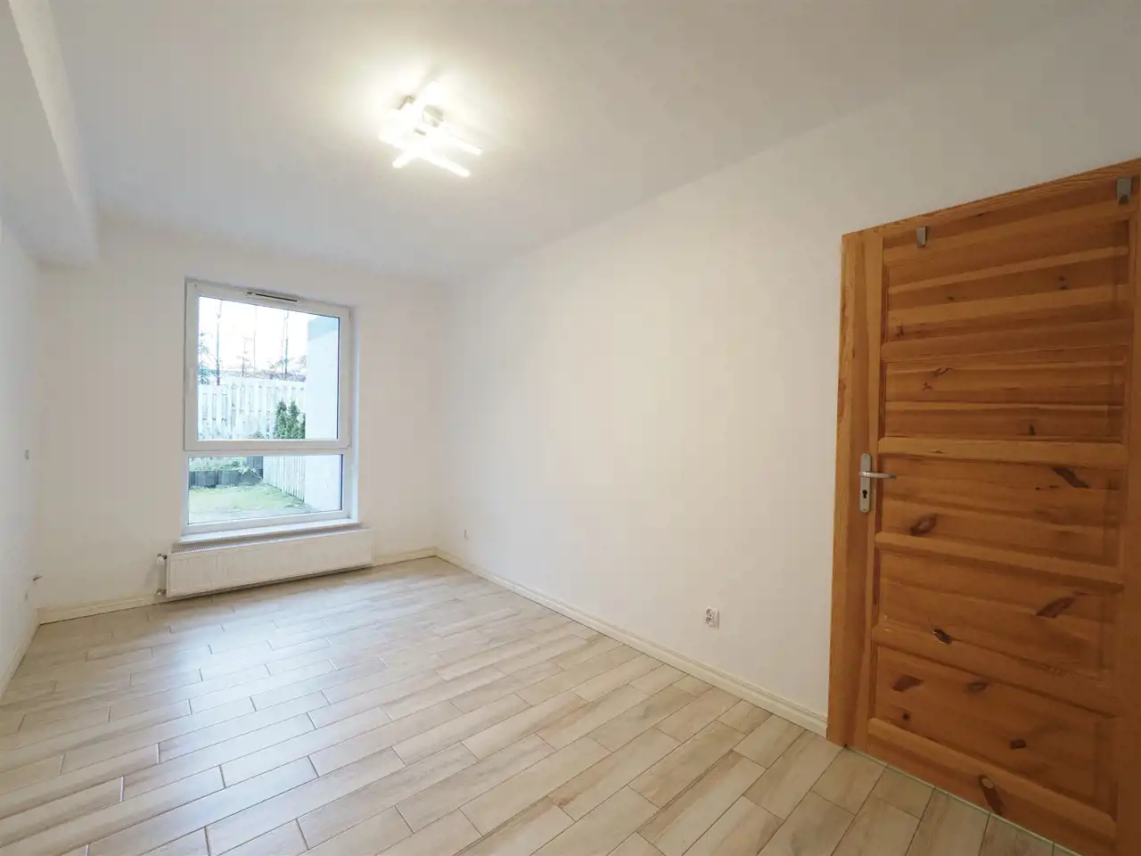 Lokal usytuowany jest na parterze. Składa się z jasnego salonu z aneksem kuchennym (29,67 m2) z wyjściem na duży taras (5,60 m2) z wyjściem na ogródek (63 m2), sypialni (13,28 m2), łazienki (4,98 m2), garderoby (1,65 m2) oraz przedpokoju (6,17 m2). Do mieszkania przynależnej piwnicy o powierzchni 3,03 m2.