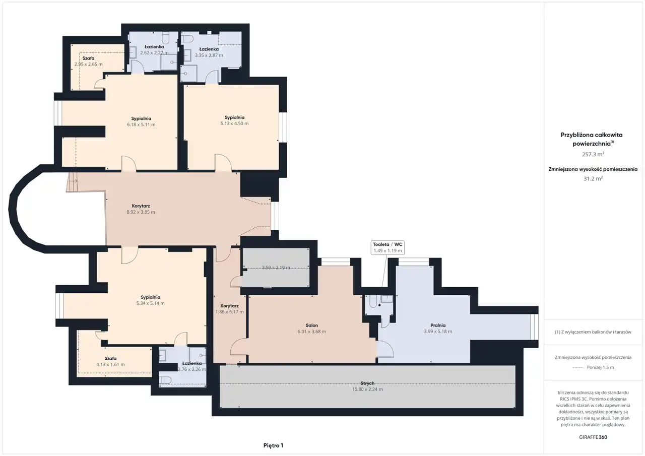 4 przestronne sypialnie, każda z prywatną łazienką oraz garderobą,