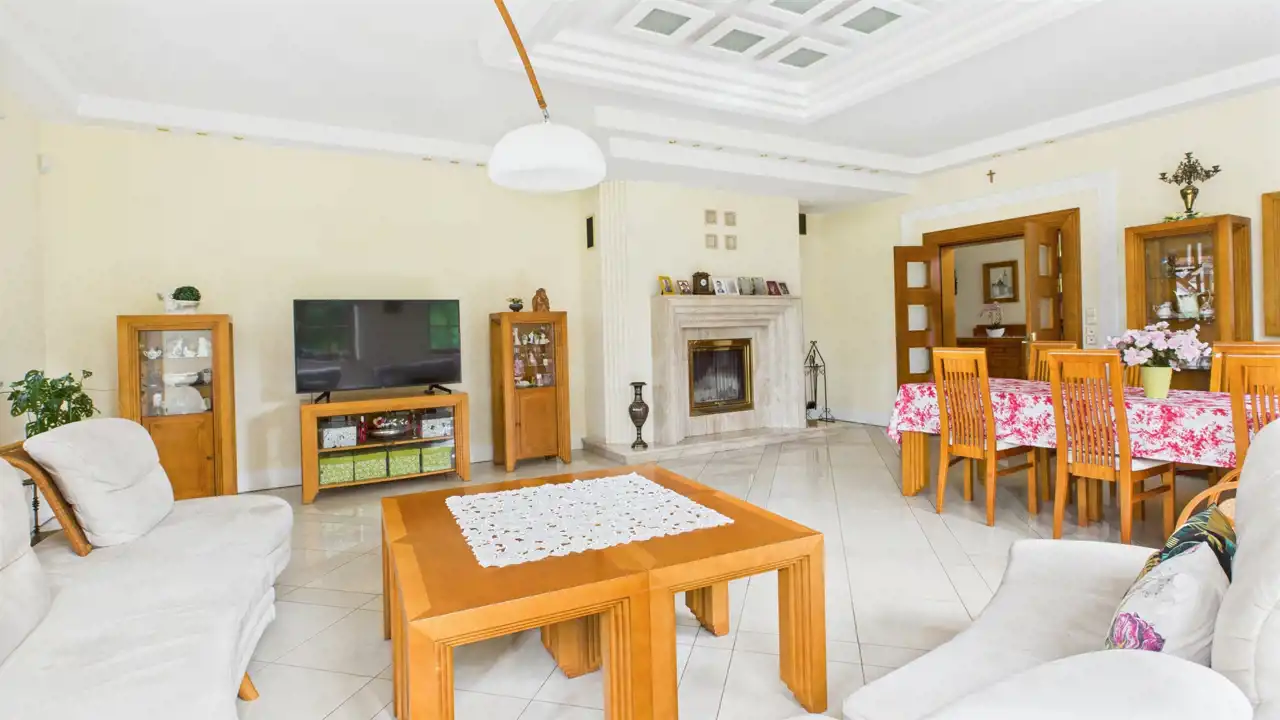 Reprezentacyjny salon z kominkiem – idealne miejsce na rodzinne spotkania i chwile relaksu,