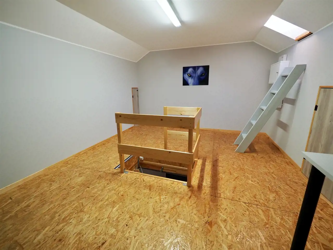 - Piętro: sypialnia 17 m2, dwa pokoje (2 x 10 m2), łazienka, korytarz; Strych