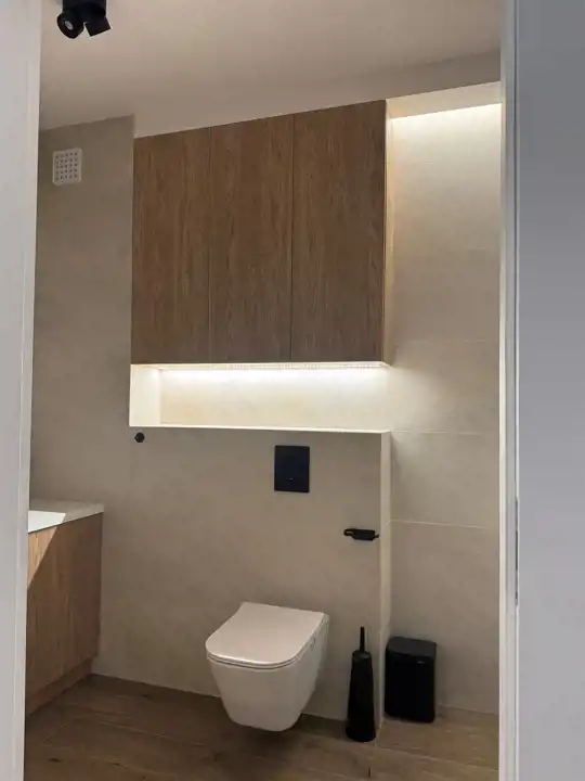 - Parter: salon z kuchnią, toaleta, korytarz;