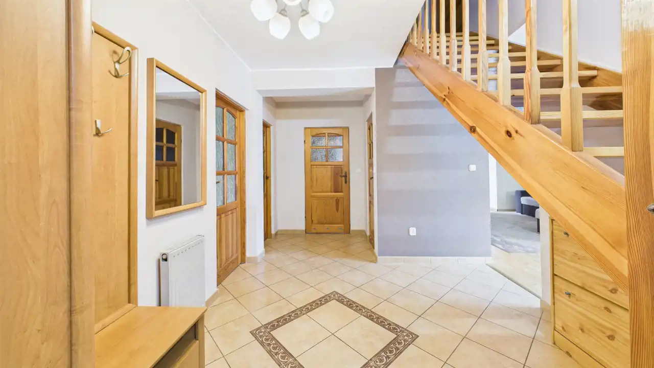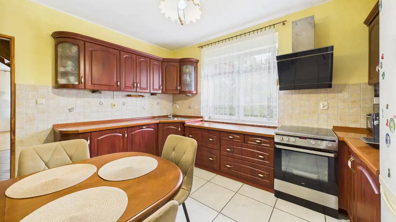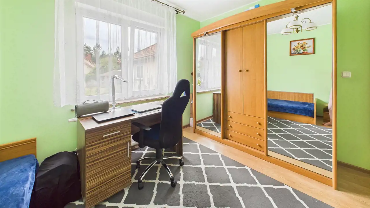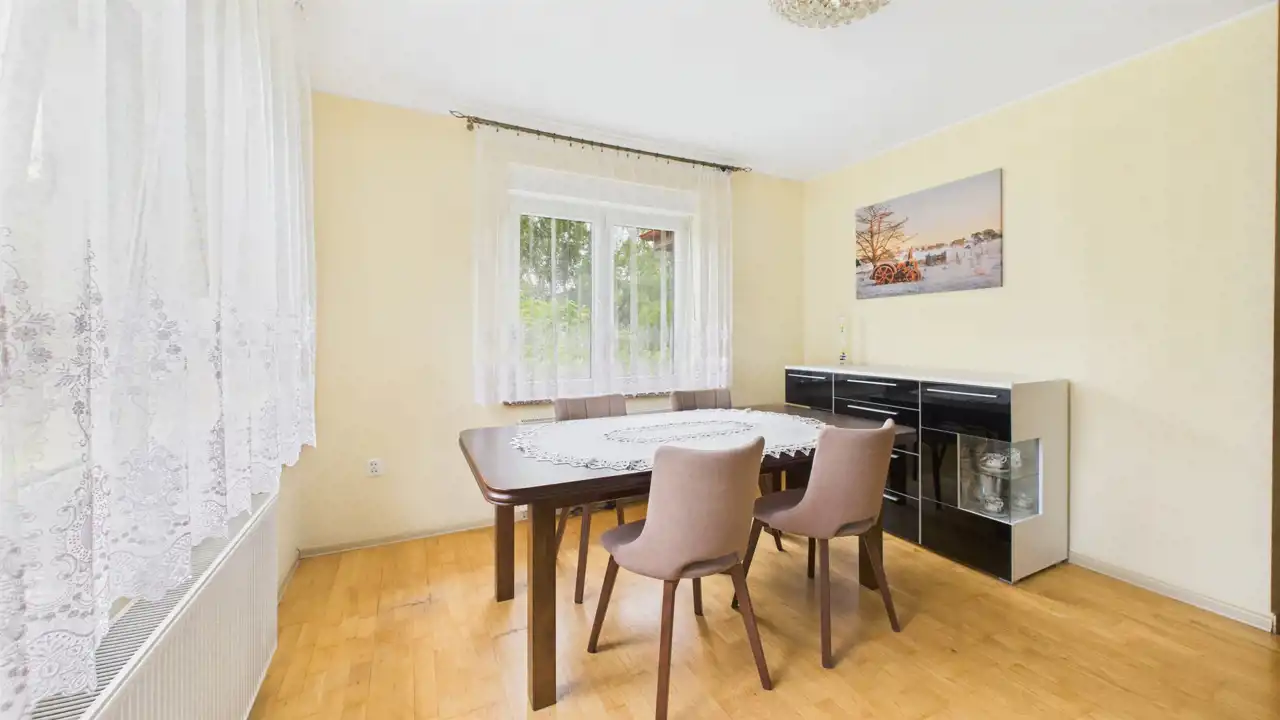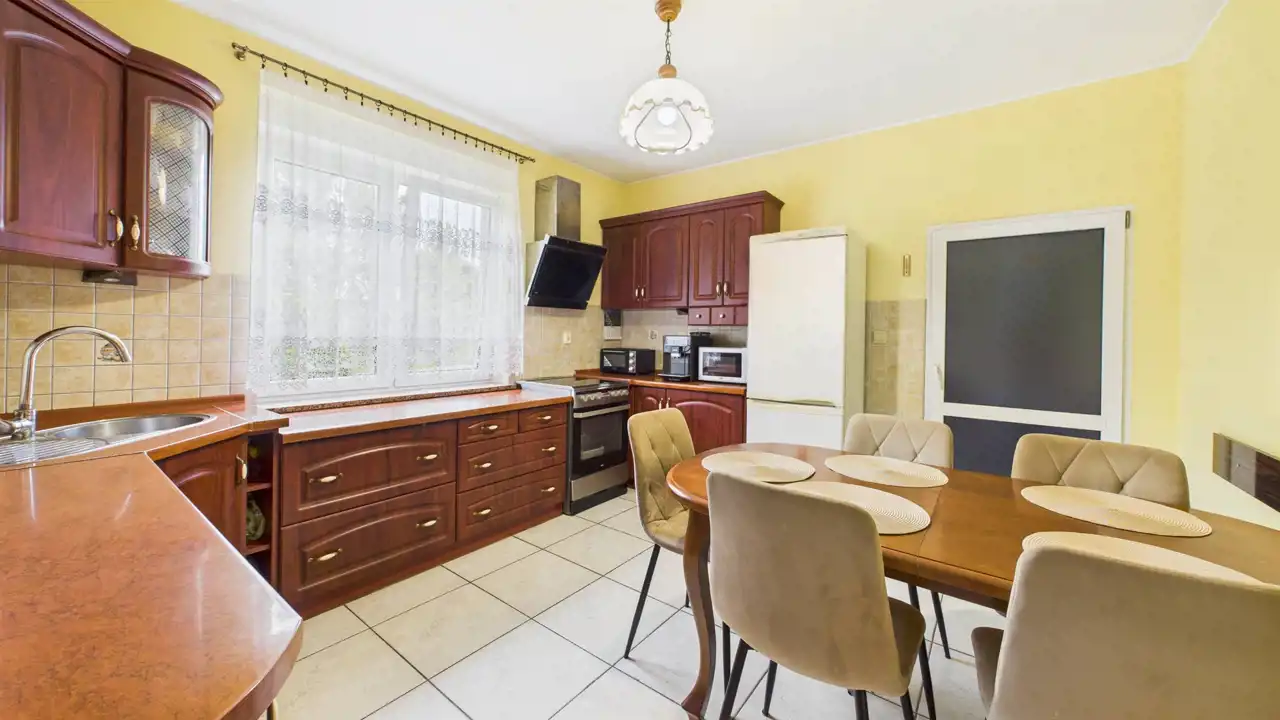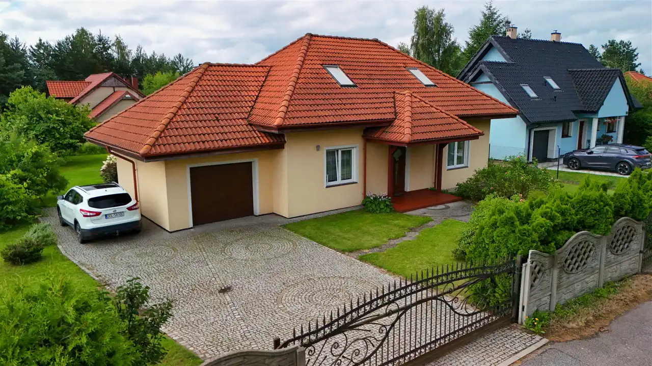 Dom posiada 6 pokoi, co daje wiele możliwości aranżacyjnych , osobna kuchnia , klimatyzowany salon– idealnie sprawdzi się dla rodzin ceniących przestrzeń i komfort. Wokół domu znajdują się piękne, zadbane nasadzenia, które tworzą atmosferę prywatności i relaksu.