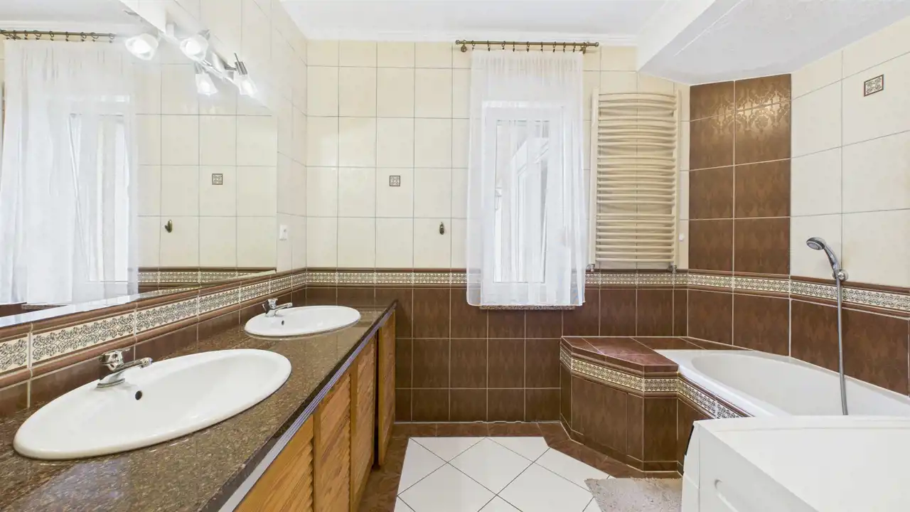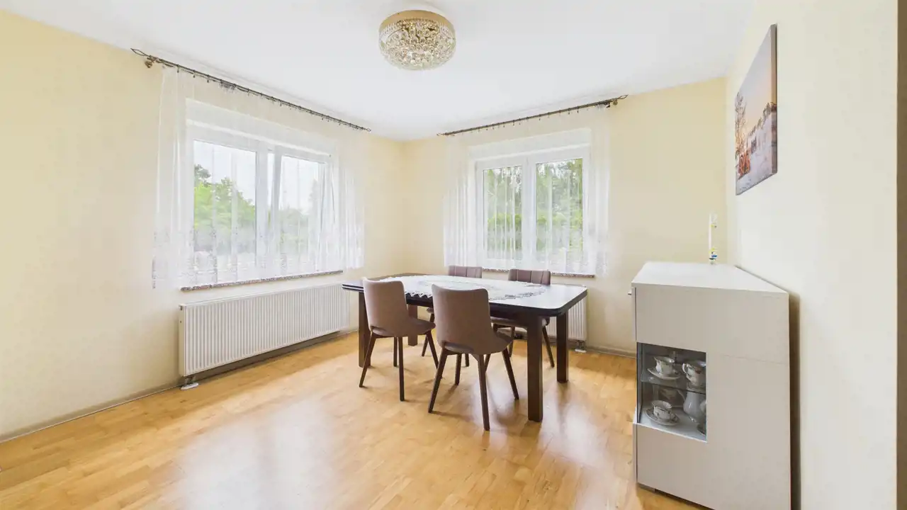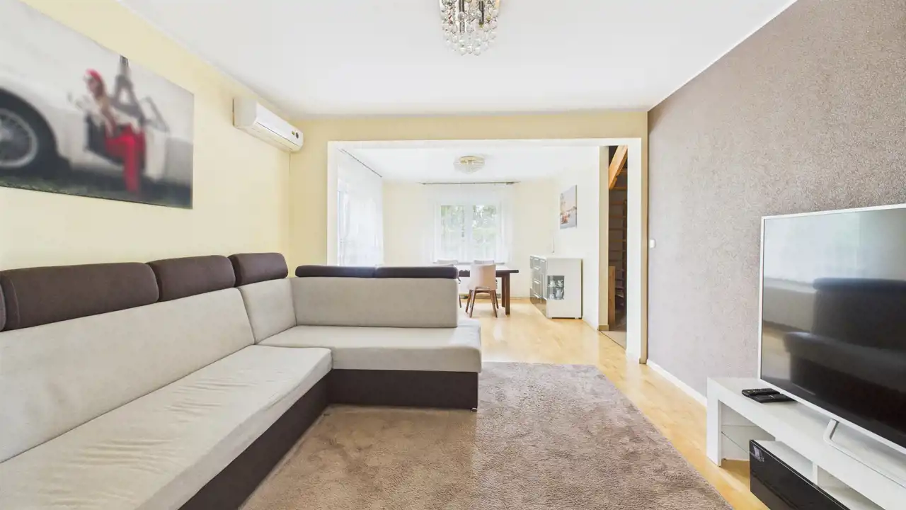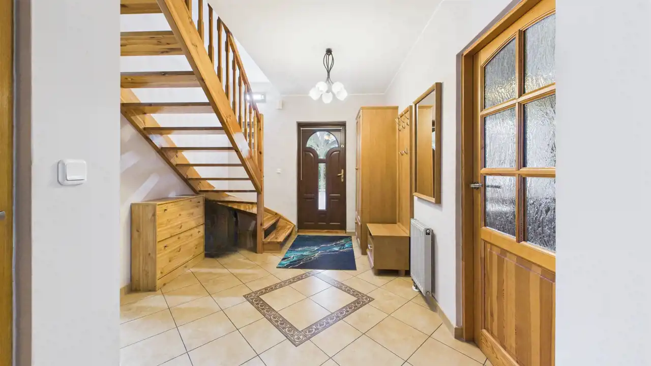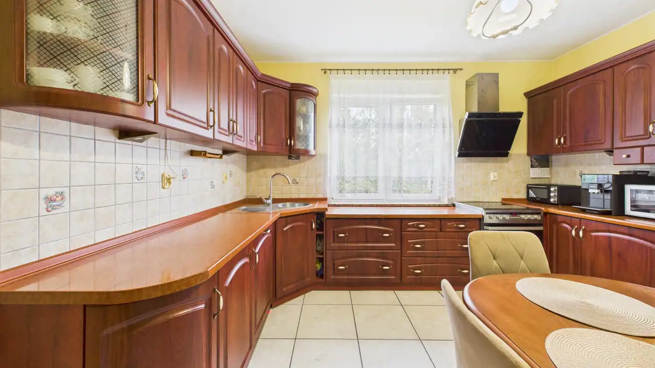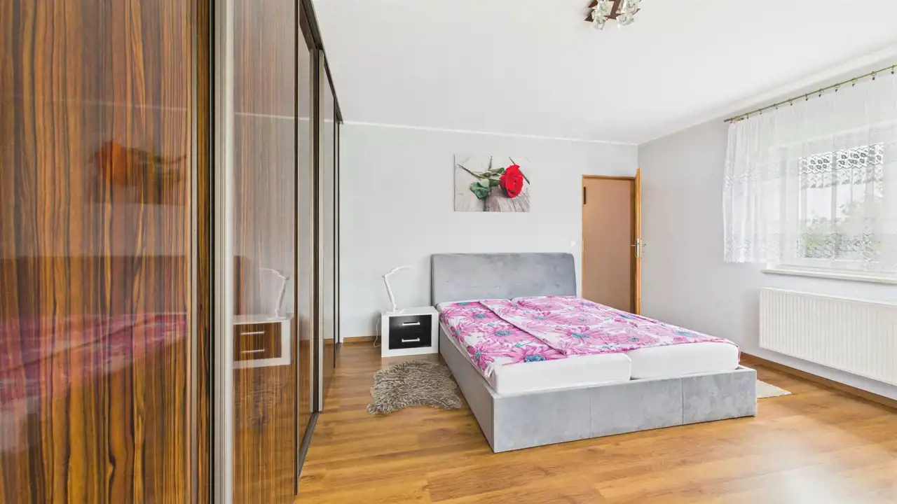 Dom posiada 6 pokoi, co daje wiele możliwości aranżacyjnych , osobna kuchnia , klimatyzowany salon– idealnie sprawdzi się dla rodzin ceniących przestrzeń i komfort. Wokół domu znajdują się piękne, zadbane nasadzenia, które tworzą atmosferę prywatności i relaksu.