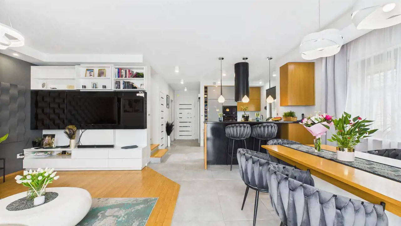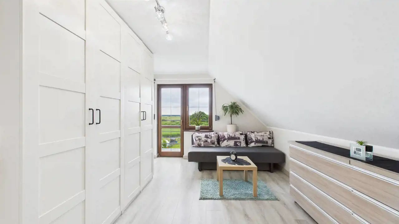 Przestronny salon z klimatyzacją i wyjściem na taras