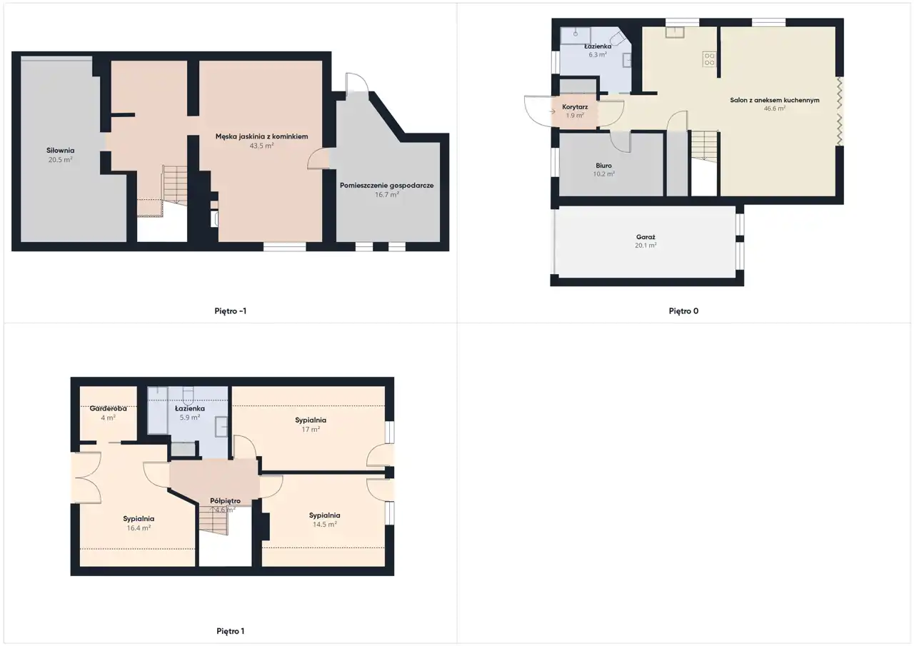 Całkowita powierzchnia domu to 231,6 m² (Garaż 20 m2, piwnica + siłownia+ pomieszczenie gospodarcze 80 m2).