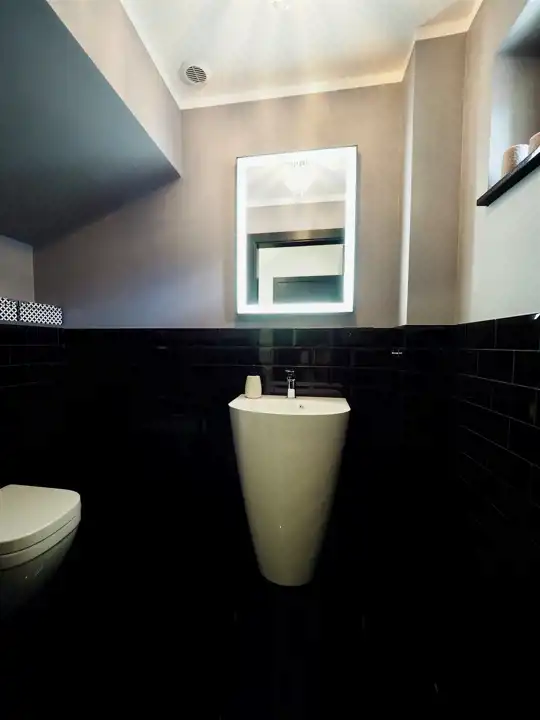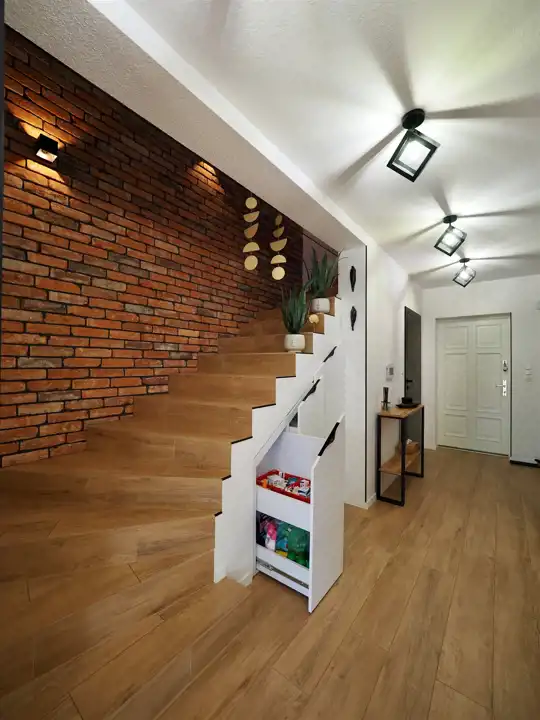 Do wykończenia użyto wysokiej jakości materiałów; w każdej sypialni zabudowa meblowa na zamówienie z dużą ilością miejsca do przechowywania; oświetlenia sterowane z pilota. Zabudowany schowek pod schodami. Częściowe wyposażenie wliczone w cenę.