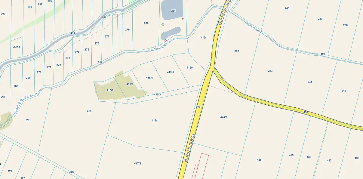 Położony przy drodze asfaltowej, w bliskiej odległości do drogi S8.