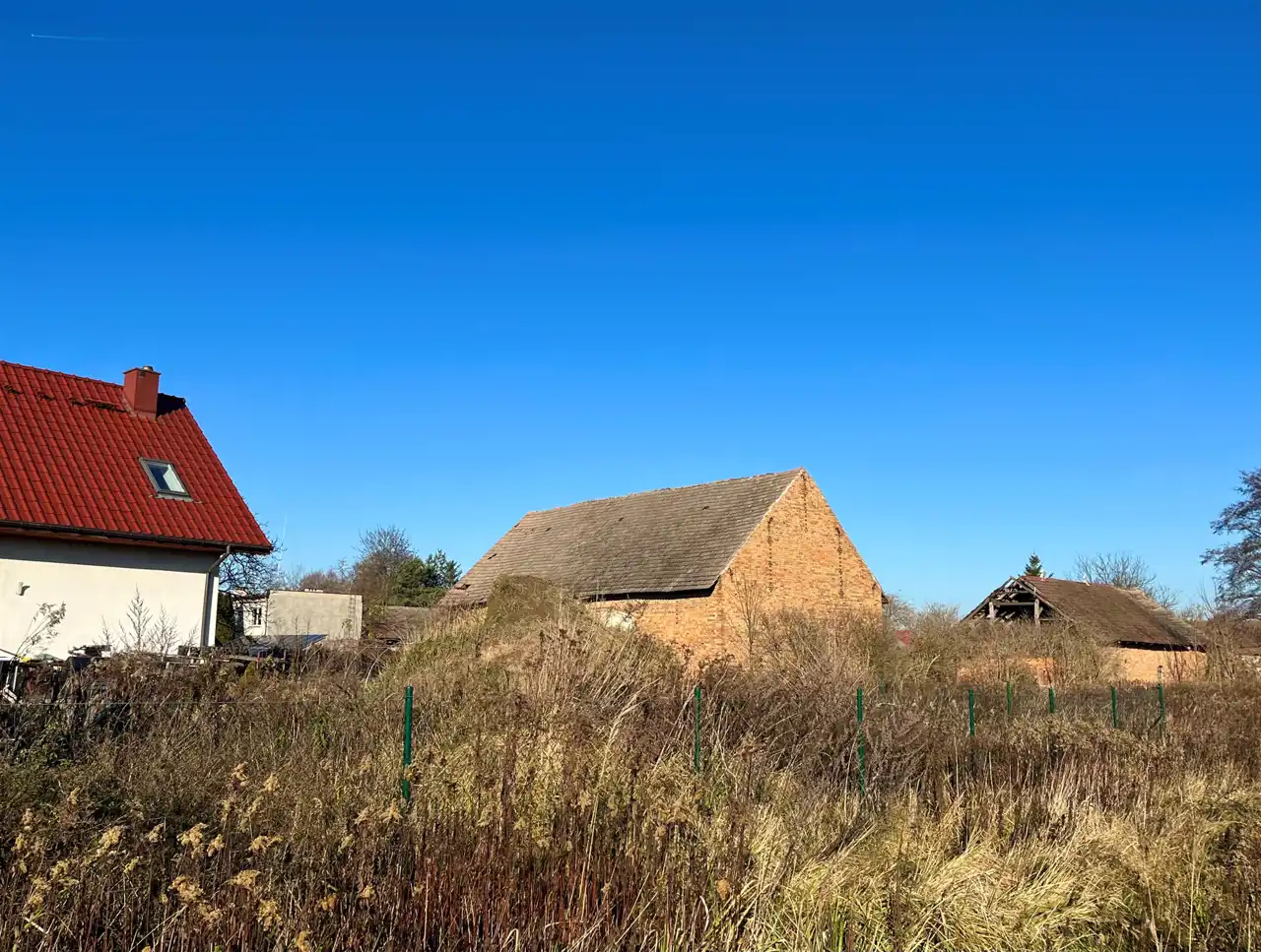 - Jedna z działek zabudowana budynkiem gospodarczym