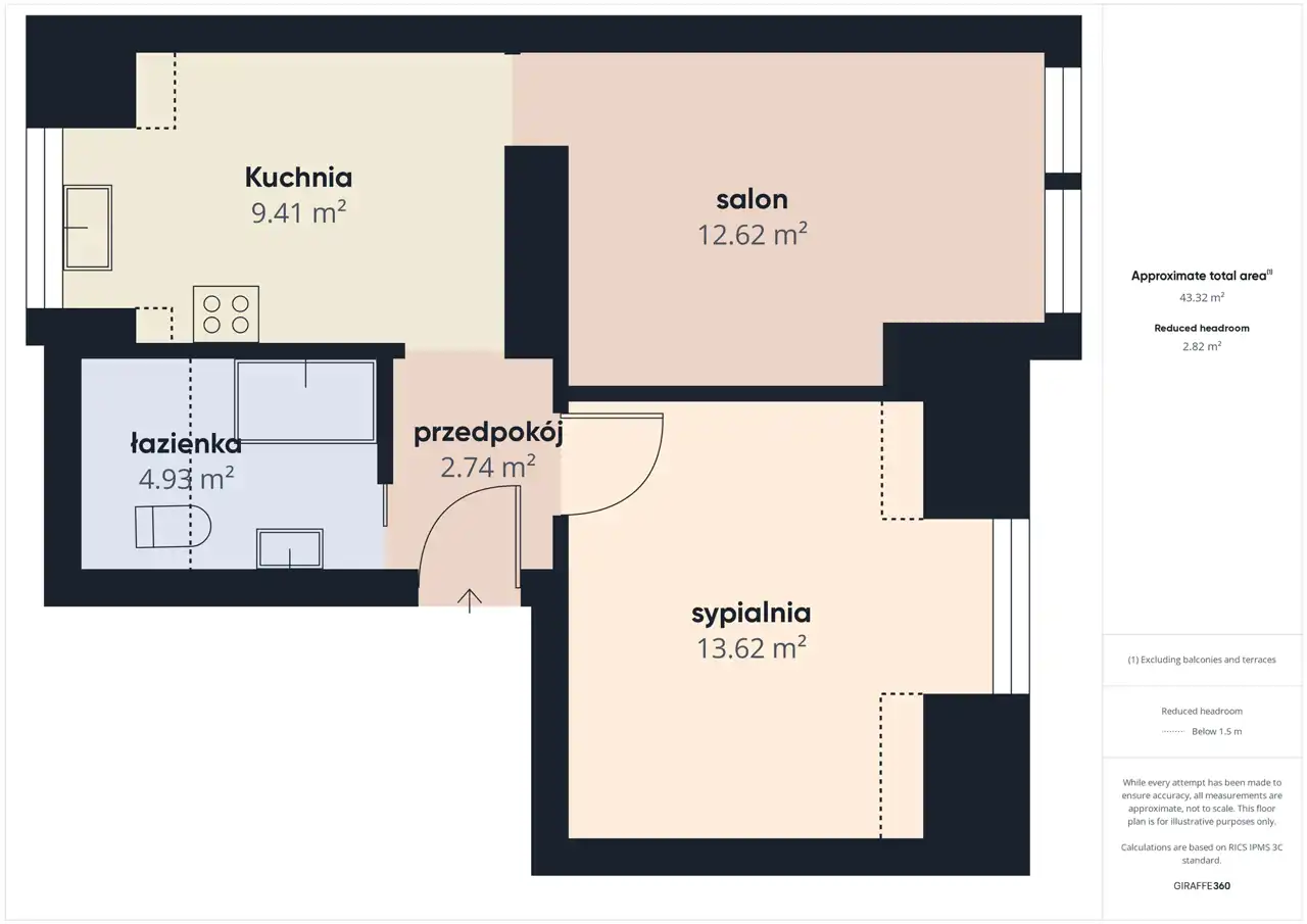 - Charakterystyka mieszkania 43.32 m2, 2 pokoje