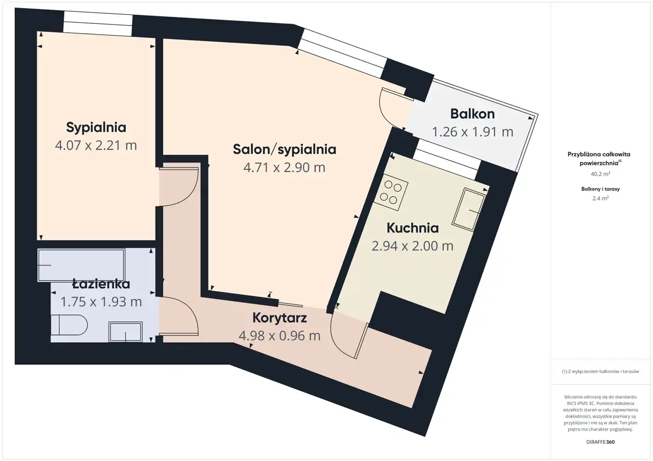 - Charakterystyka mieszkania 39 m2, 2 pokoje