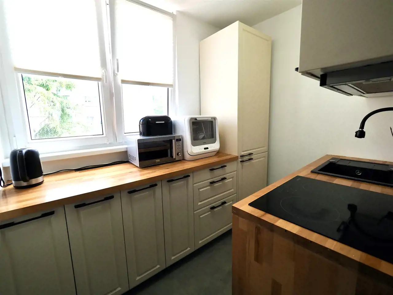 - Salon, dwa pokoje, kuchnia, łazienka, przedpokój