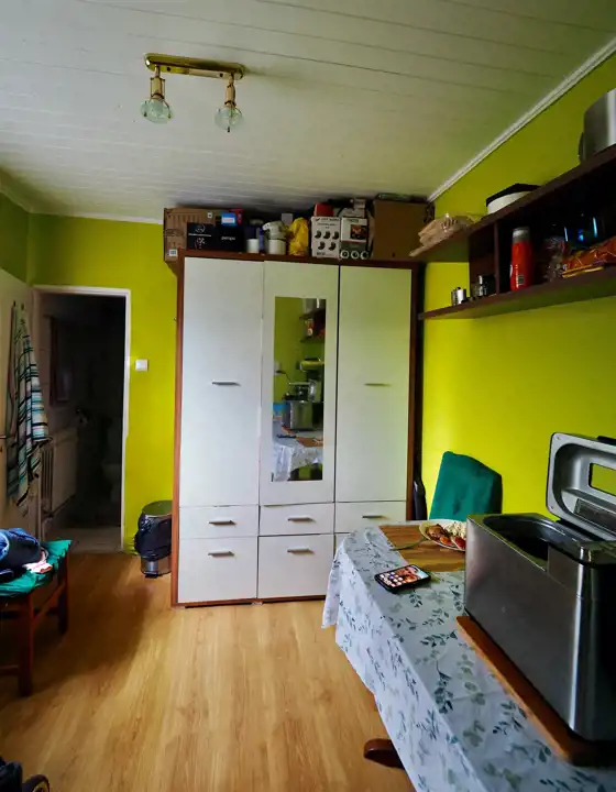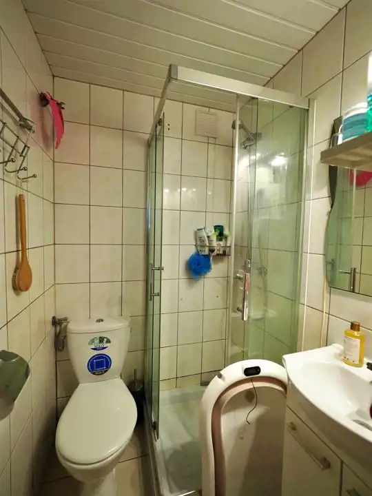 - DOBUDÓWKA o pow. 26 m2 - zaadoptowana na mieszkanie dwupokojowe + kuchnia, łazienka; C.O. elektryczne + woda ciepła z bojlera. Osobne liczniki.