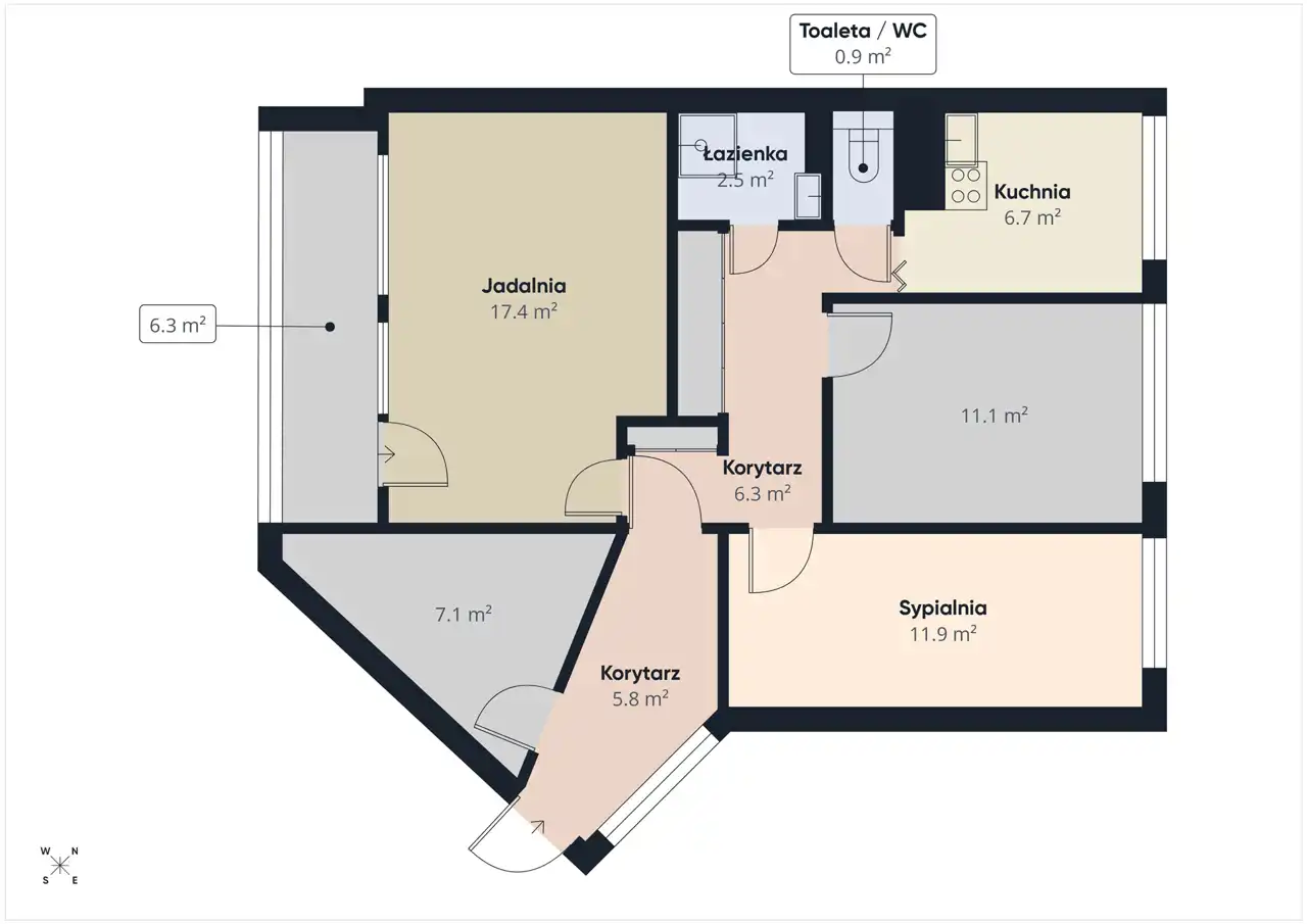 Mieszkanie oferuje komfortową przestrzeń do życia – idealną zarówno dla rodziny, jak i dla osób szukających większego metrażu w rozsądnej cenie. Ogromnym atutem jest duży balkon, który stanowi świetne miejsce na poranną kawę, odpoczynek po pracy czy małą strefę zieleni.