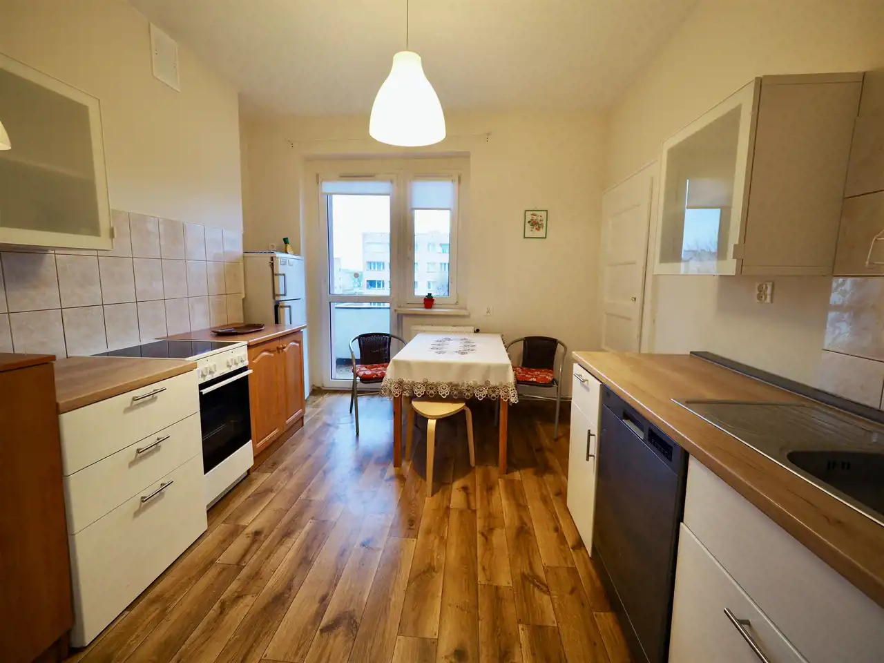 - przestronny salon, trzy sypialnie, kuchnia + spiżarnia + balkon, łazienka, korytarz.