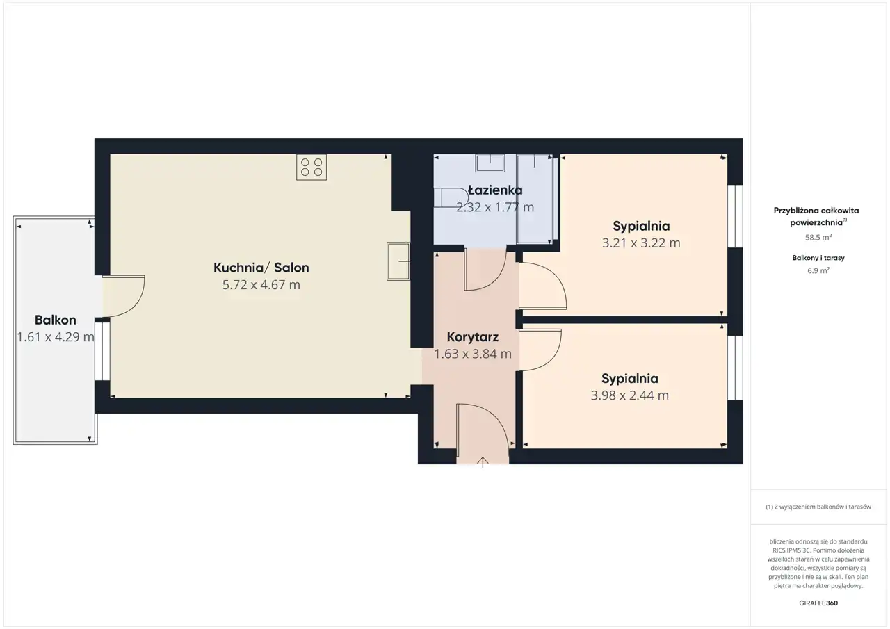 Powierzchnia mieszkania: 58,5 m²